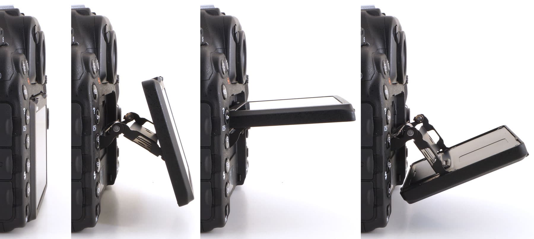 Видоискатель камеры накрепко вмонтирован в корпус, зато дисплей здесь откидного типа.