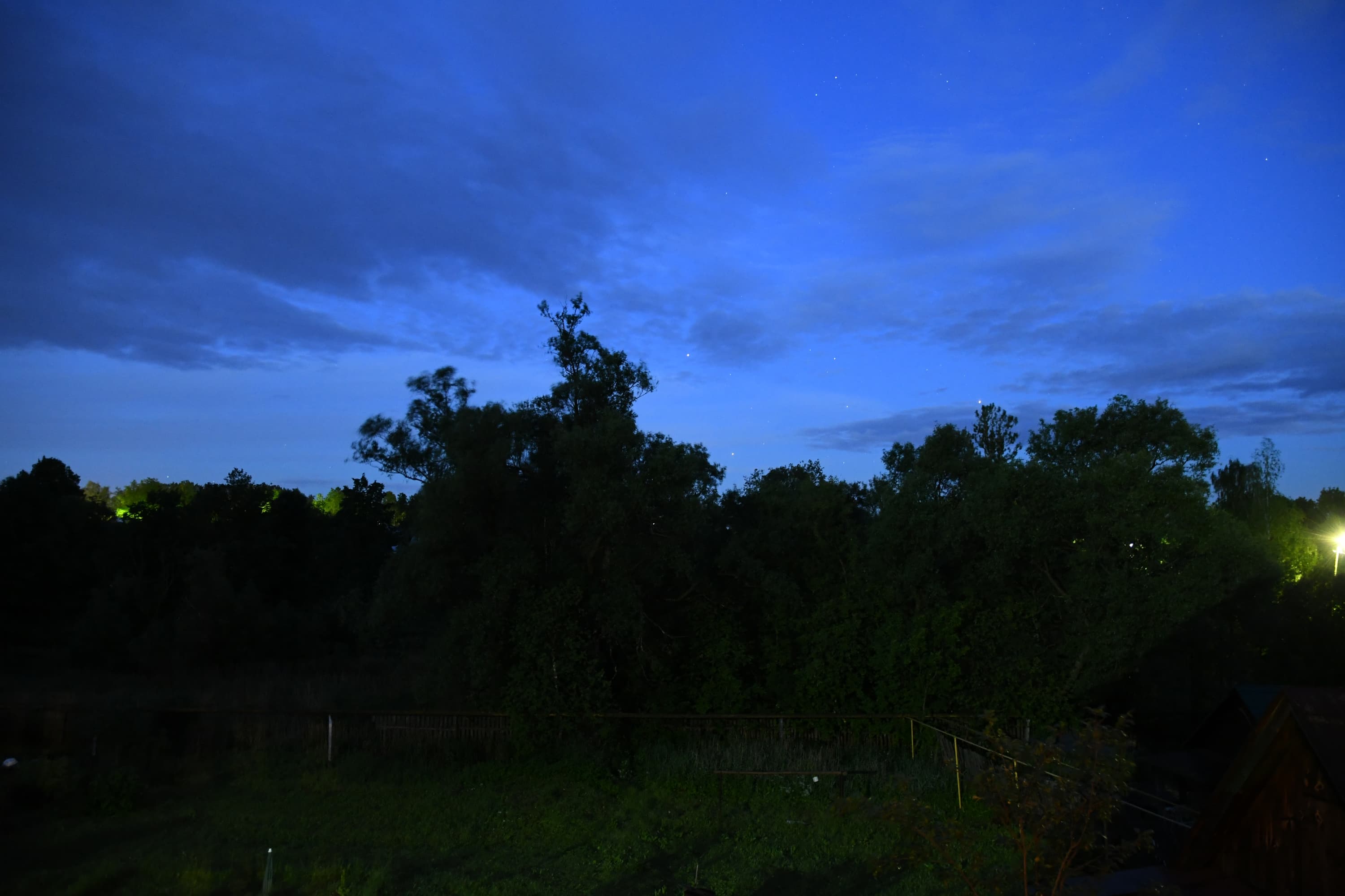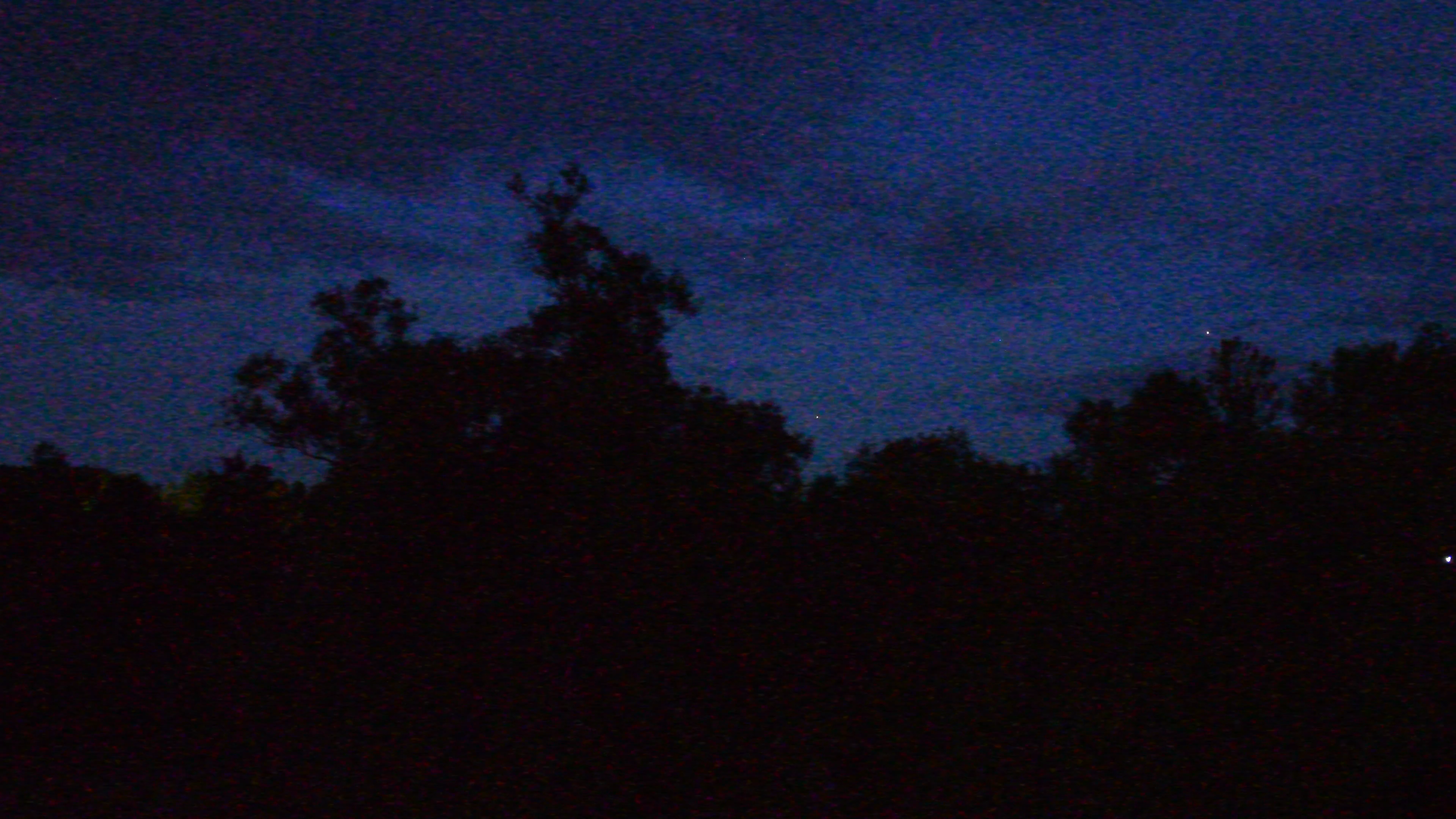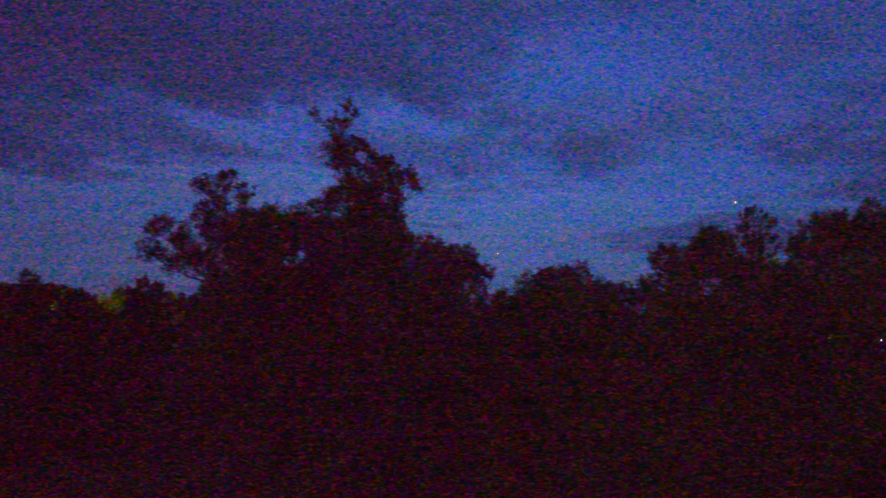 Заметим: съемка проводилась ночью, когда человеческий глаз с трудом различает эту разницу между небосводом и кронами деревьев. А камера — видит. Ну а шум... Что ж, при таком усилении он неизбежен.