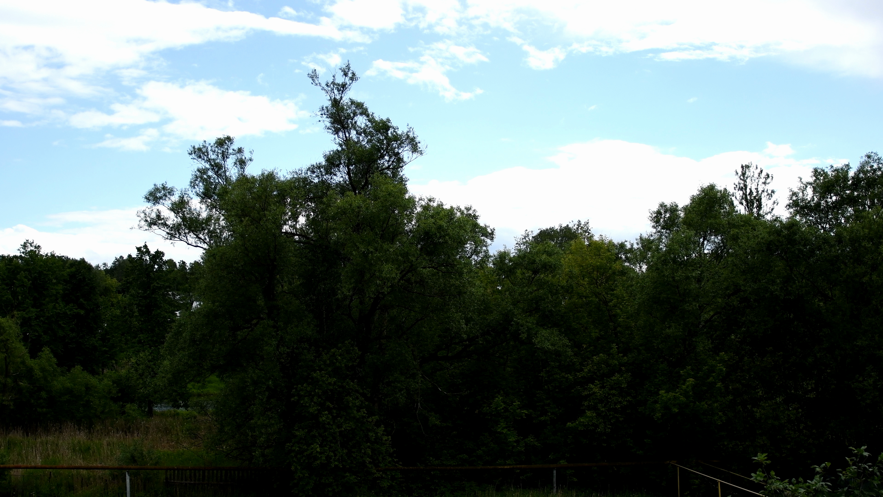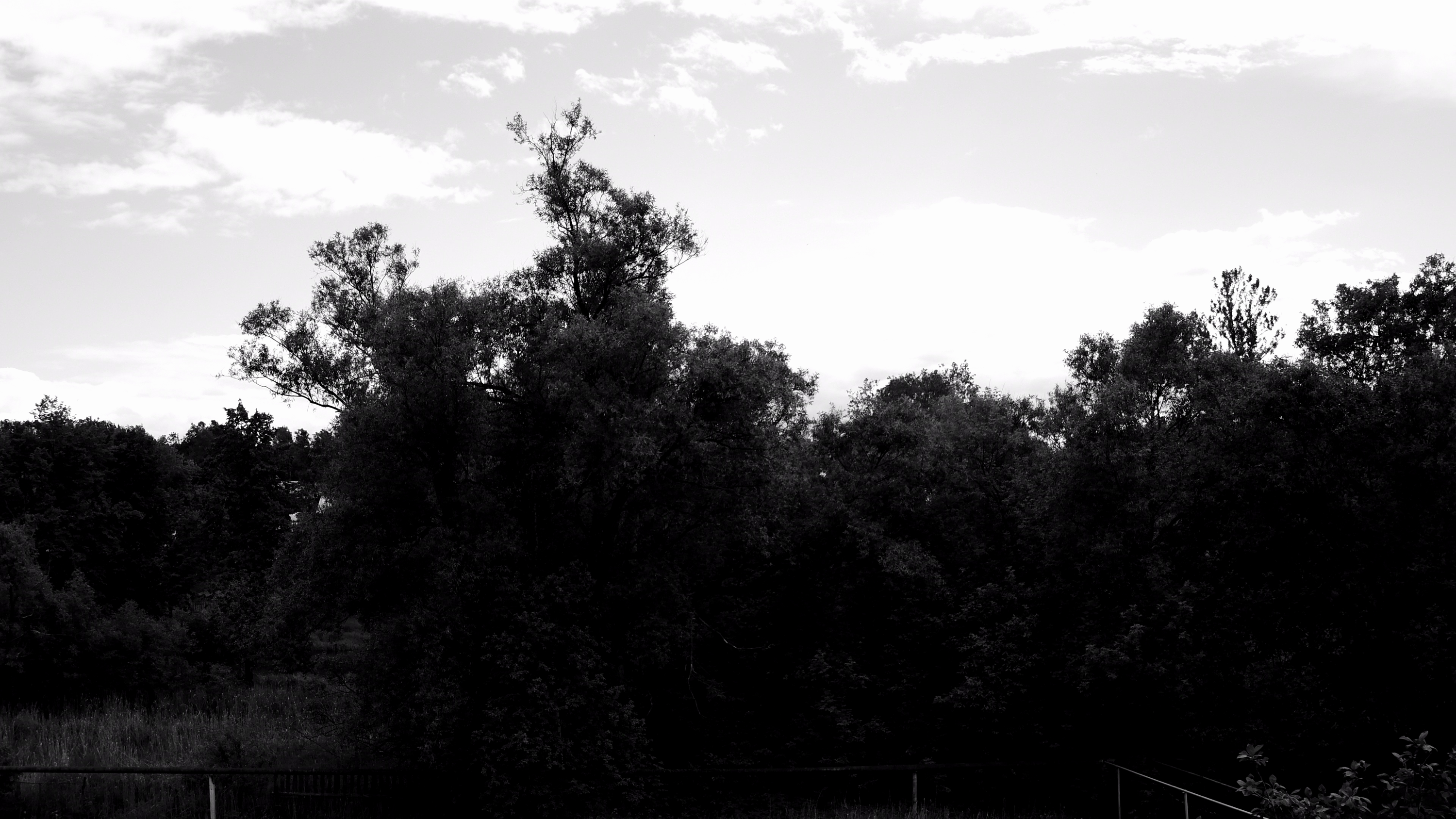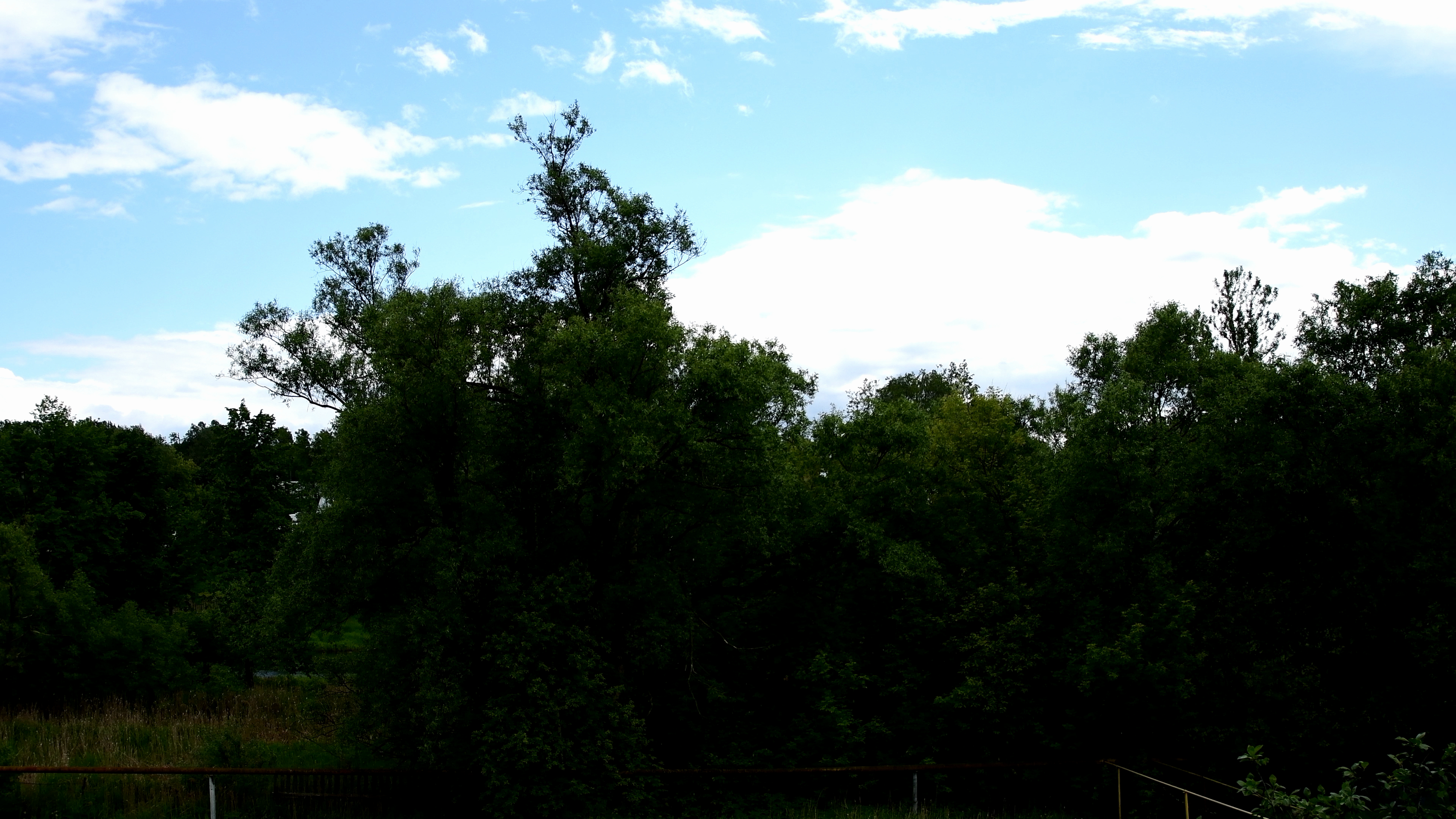 Заметим: съемка проводилась ночью, когда человеческий глаз с трудом различает эту разницу между небосводом и кронами деревьев. А камера — видит. Ну а шум... Что ж, при таком усилении он неизбежен.