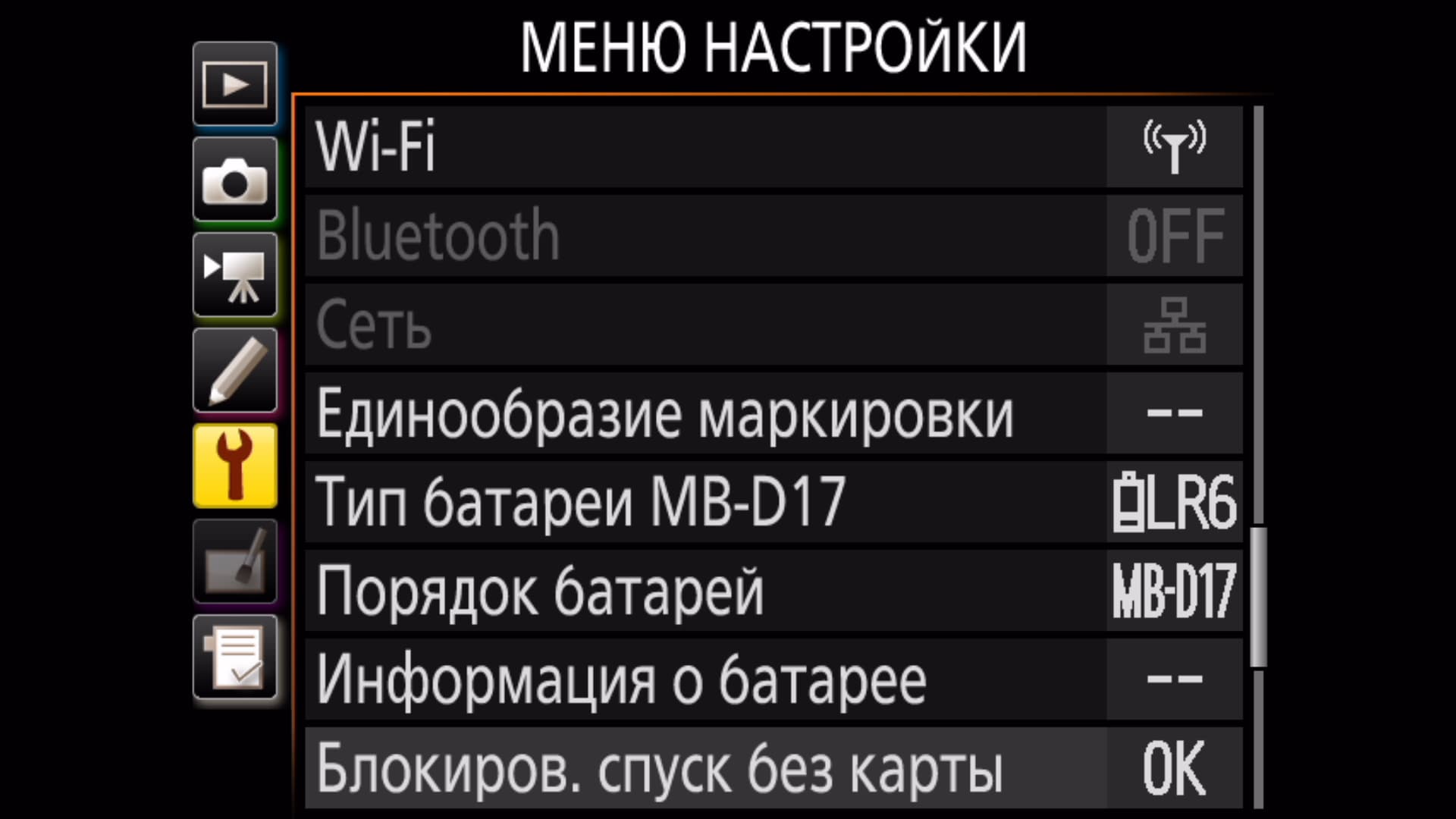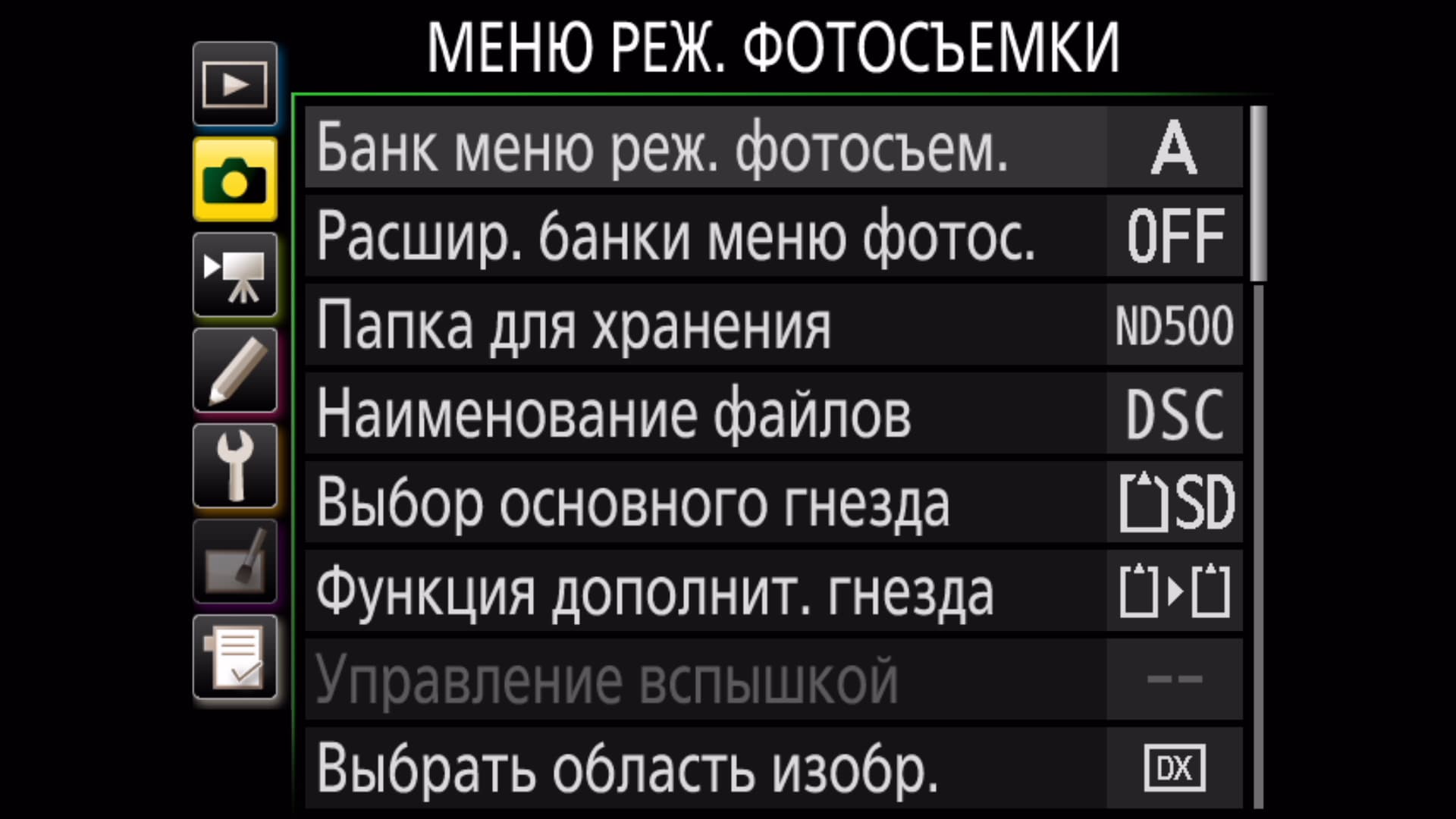 Требуется отметить наличие огромного количества настроек, затрагивающих буквально каждый аспект съемки. Приятно, что служебное меню всегда «помнит» тот пункт, к которому оператор обращался последний раз, и открывается именно на этом последнем пункте.