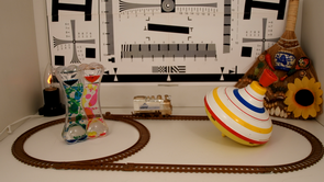 Второе проявление роллинг-шаттера, желейность картинки, измерить нельзя, зато увидеть — вполне реально. Если бы не масса камеры, да и стоимость тоже. Ведь нужную съемку мы обычно получаем, прокатив камеру на дерганом электроавтомобильчике. Но с рассматриваемой камерой, отягощенной тяжелым объективом, такой фокус не удастся. А потому оставим наши игрушечные опыты для камер иного разряда — небольших любительских или вовсе экшн-камер.