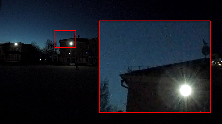 Большинство камер с микроскопической оптикой почти всегда бесполезны при съемке в условиях недостаточного уровня освещенности. Рассматриваемая камера в этом вопросе не отличается оригинальностью — при отсутствии света аппарат увеличивает чувствительность и выдержку до предела, вследствие чего контуры движущихся объектов становятся размытыми, а в кадре появляется стандартный для такой съемки шум.