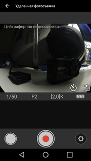 Процесс соединения камеры со смартфоном заключается в предварительной связи двух аппаратов через Bluetooth посредством NFC либо вручную, а для того, чтобы удаленно управлять видео/фотосъемкой, в ходе работы оба устройства автоматически переключатся на связь через скоростные Wi-Fi-адаптеры. У нас не сразу получилось добиться устойчивого соединения. По всей видимости, какую-то роль сыграли в этом особенности используемых смартфонов разных моделей.