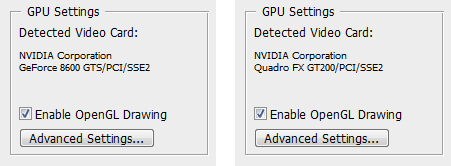 Итак, здесь и далее в левой части рисунка (видеоролика) будет располагаться видеозапись работы с GeForce 8600 GTS, а в правой — с Quadro CX.