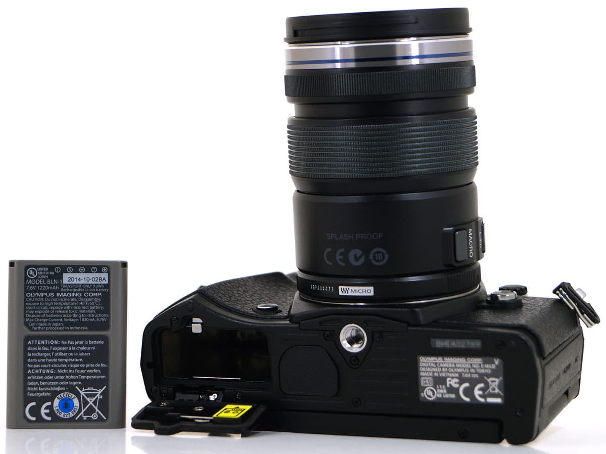 Камера комплектуется аккумулятором BLN-1 емкостью 1220 мА·ч. Фотоаппарат имеет стандартное для подавляющего большинства фотокамер ограничение на длительность беспрерывной видеозаписи, которое составляет 29 минут 59 секунд вне зависимости от выбранного режима. По истечении этого времени запись остановится, а возобновить ее можно будет только вручную повторным нажатием кнопки Rec.