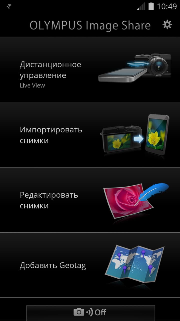 Функции адаптера Wi-Fi, который встроен в фотоаппарат, реализуются посредством мобильного приложения Olympus Image Share (версия для Android). Это приложение отличается устойчивостью в работе, отсутствием необъяснимых ошибок, зависаний и вылетов. Задержка при передаче видеопотока составляет около половины секунды.