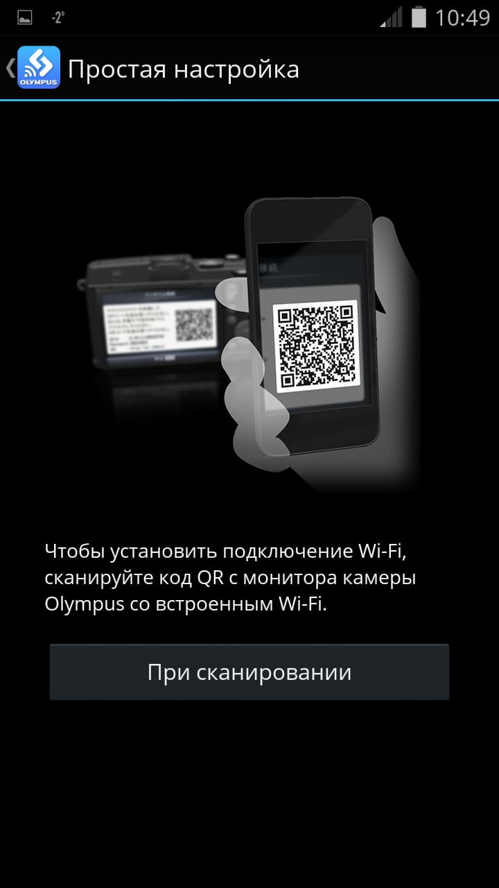 | Старт приложения | Инструкция по сканированию QR-кода, который выводится на дисплей фотокамеры | Выбор режима съемки | Настройка параметров экспозиции | Просмотр записанного материала |
