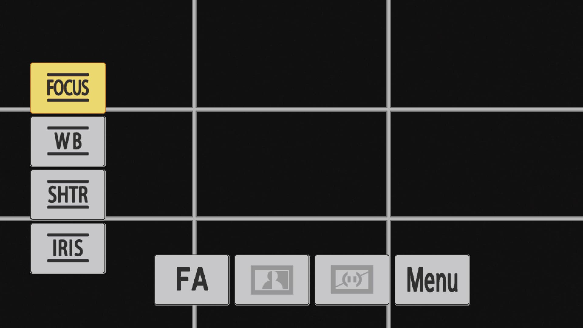 Быстрый доступ к наиболее частым настройкам осуществляется посредством всплывающих кнопок, которые появляются при нажатии на сенсорный экран. Помимо сенсорного экрана, управление также может производиться и посредством «настоящих» кнопок, расположенных в нижней части корпуса камеры, как раз под пальцами левой руки оператора.