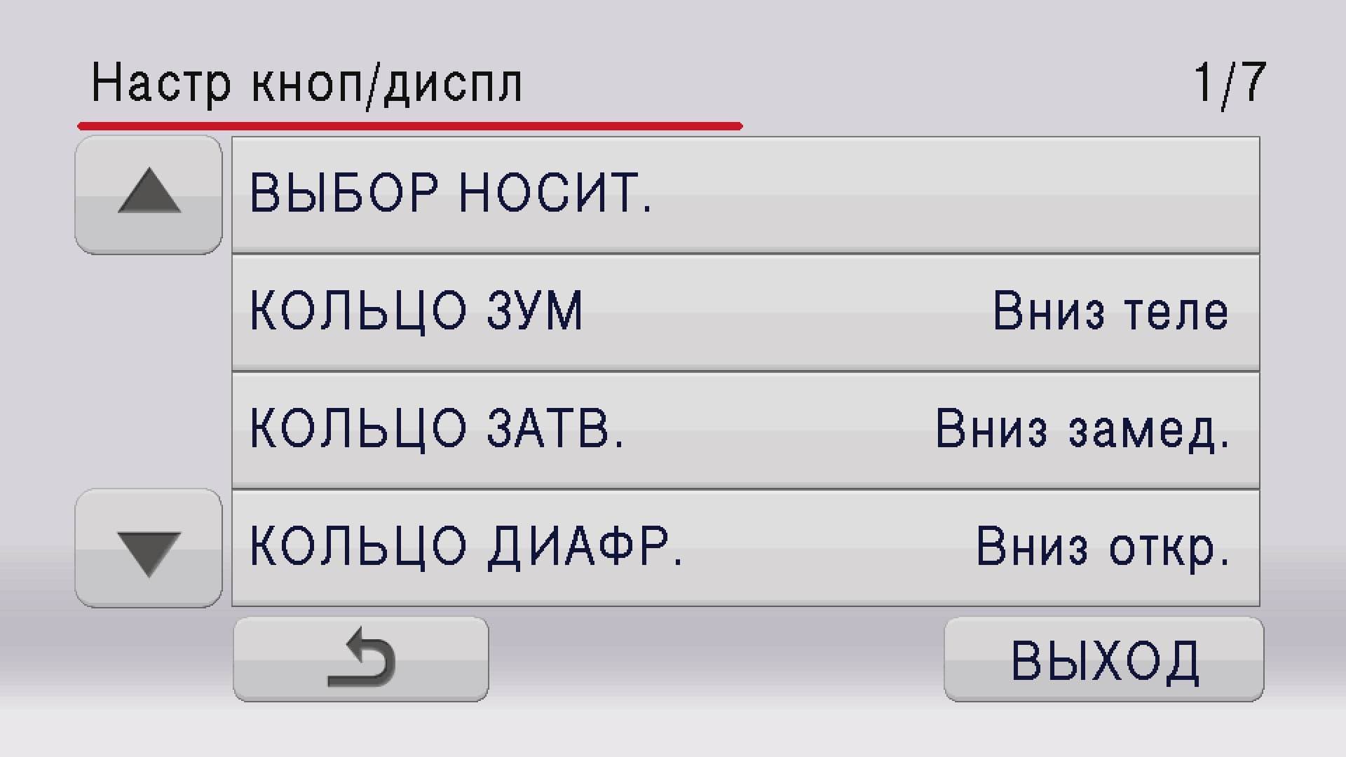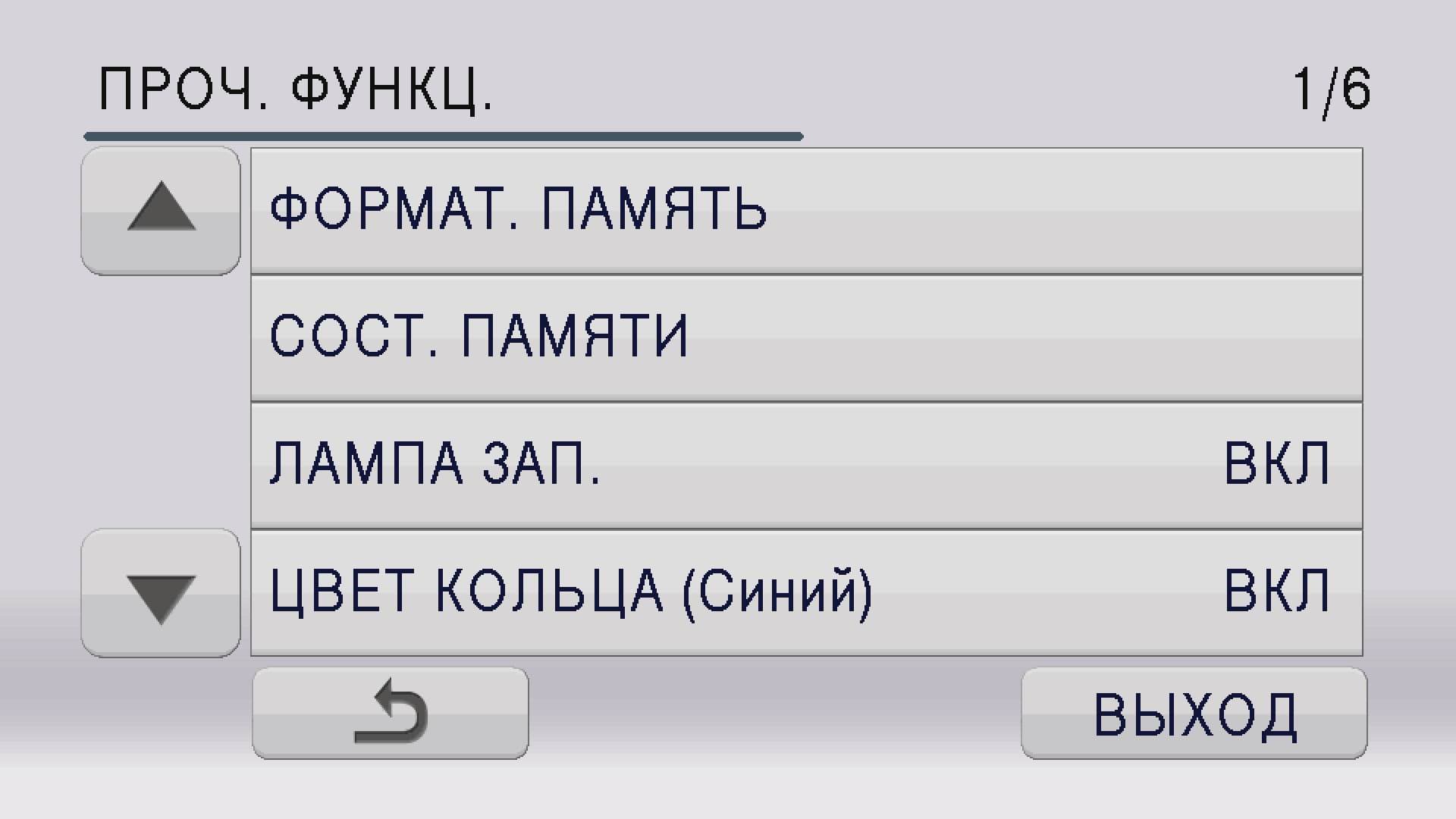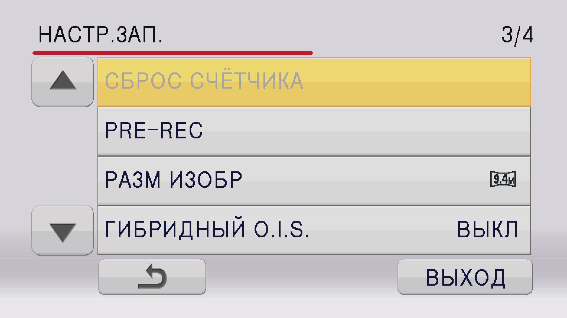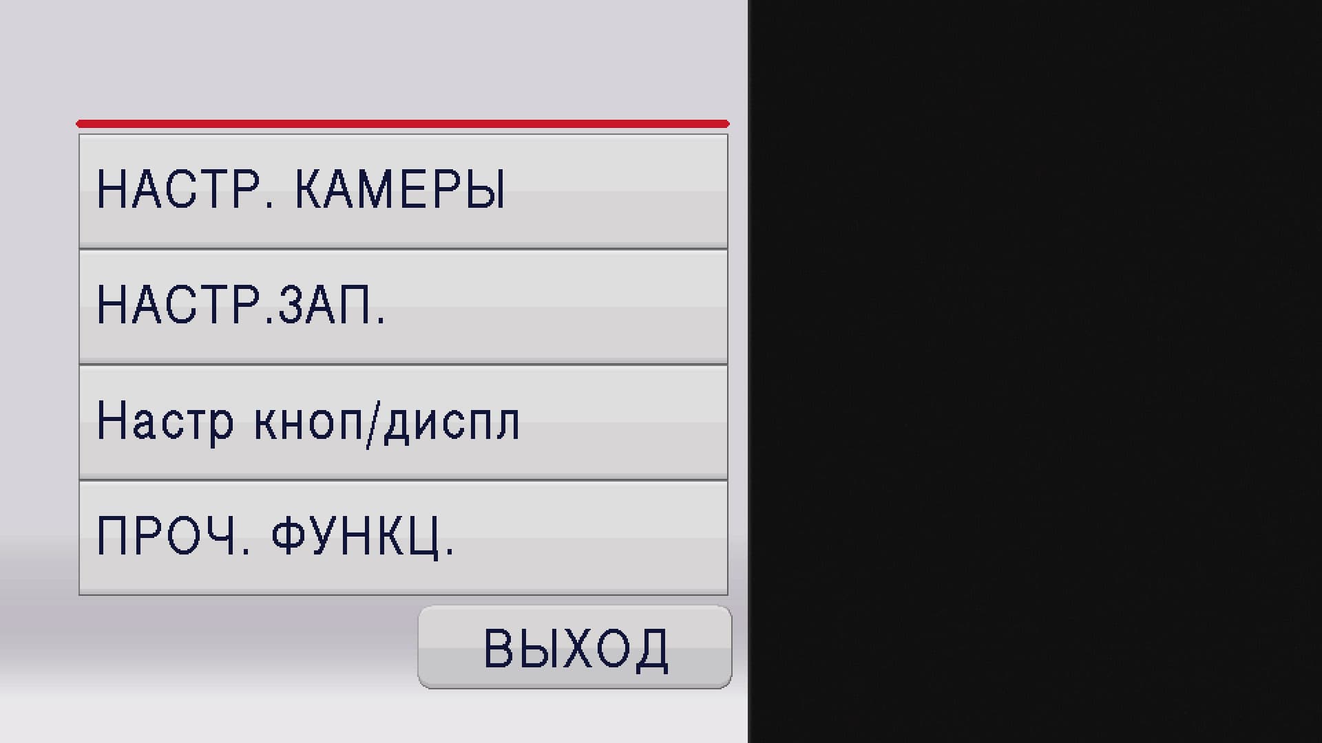 Служебное меню камеры состоит из четырех основных пунктов: Настройка камеры, Настройка записи, Настройка кнопок и дисплея, и Прочие функции.