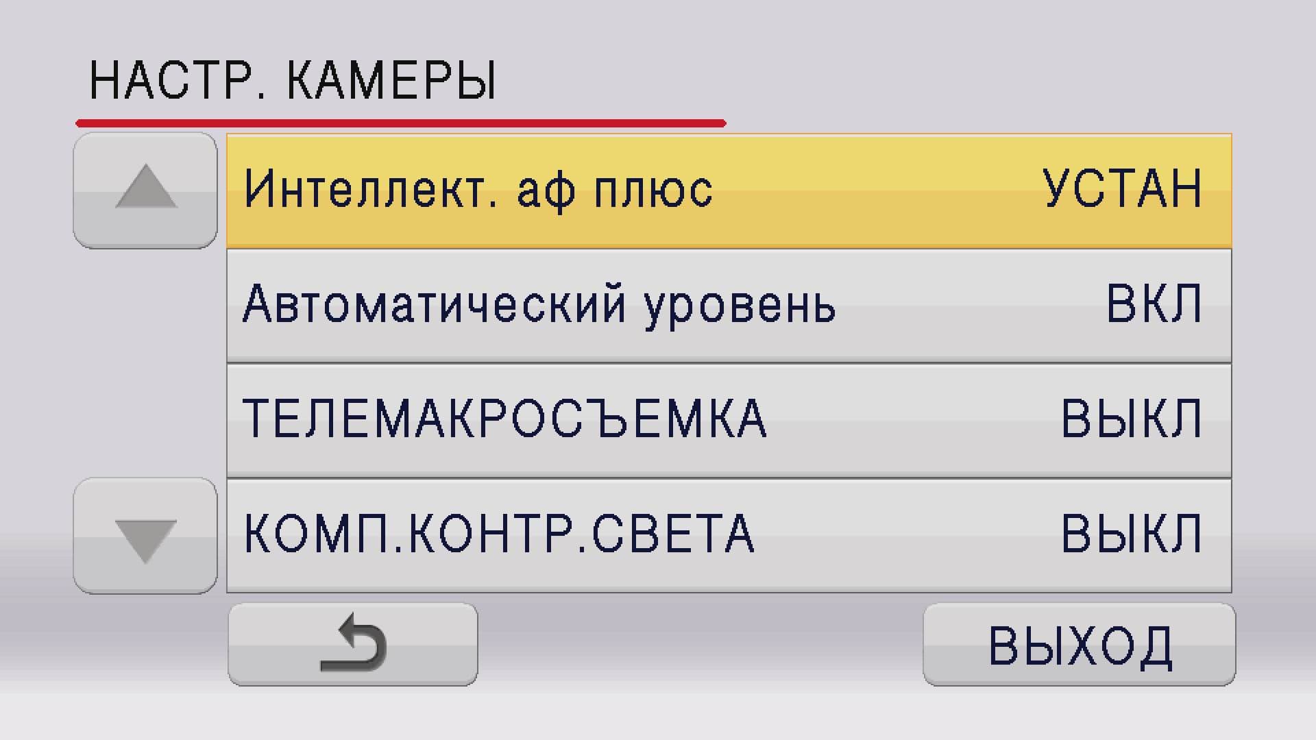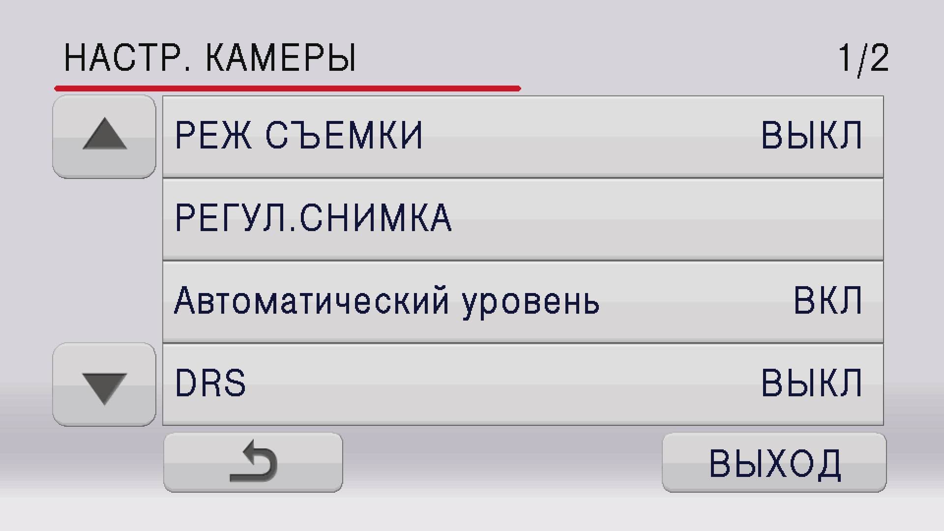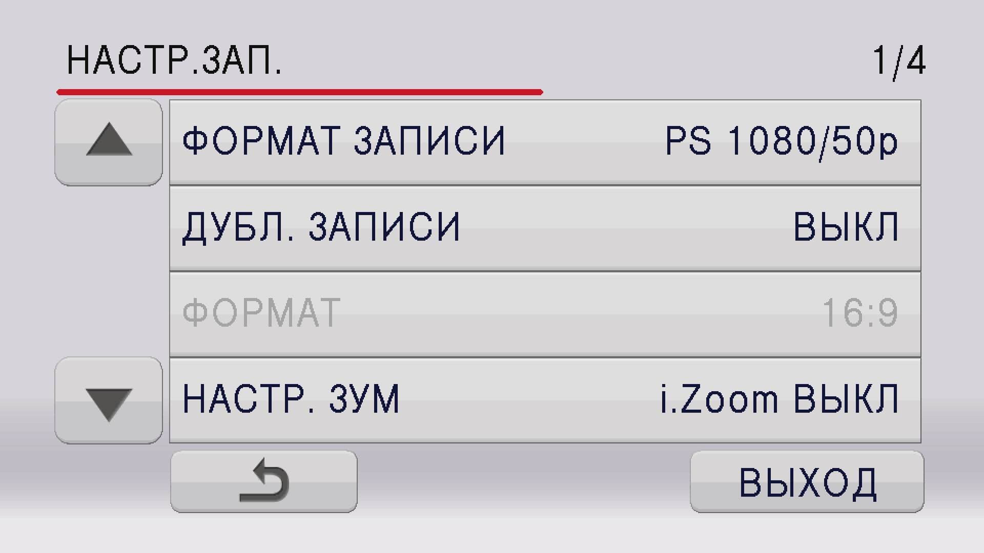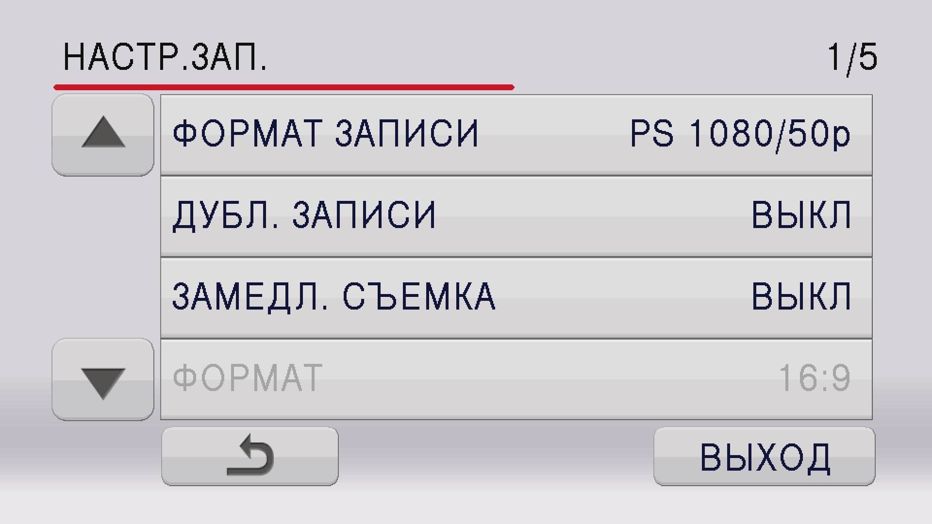 В зависимости от режима, в котором находится камера, содержание некоторых пунктов меню может серьезно различаться. Так, при активированном автоматическом режиме из разделов меню «Настройка камеры» и «Настройка записи» пропадают «Режим съемки», «Регулирование снимка» (данный пункт правильнее было бы назвать «Регулировка изображения»), и другие важные пункты. Логичней выглядели бы эти пункты не пропадающими из меню, а остающиеся в нем, только в неактивном состоянии.