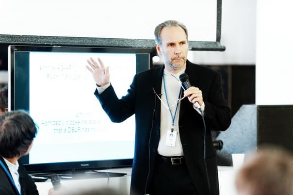 Кстати, интервью снято как раз с двух новых камер AG-AC160. Мы также вели видеозапись выступления Барри на форуме, но так как хронометраж выступления составил более часа, а выступление шло не очень динамично из-за переводчика, мы представим вам краткий текстовый конспект этого мероприятия.