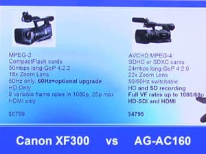 Canon XF300 против AG-AC160. Единственное преимущество Canon в 4:2:2, в остальном преимуществ нет. И ещё больше преимущество Panasonic в цене.