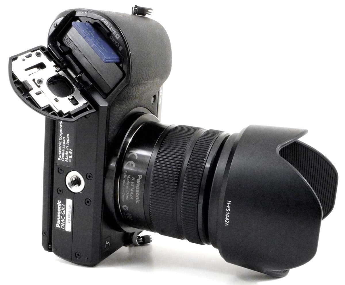 Литий-ионный аккумулятор емкостью 1025 мА·ч вставляется в гнездо, расположенное в днище аппарата. Здесь же имеется слот для карты памяти. Радует факт, что крышка гнезда аккумулятора находится далеко от штативного отверстия — тем самым появляется возможность оперативной замены батареи или карты памяти без демонтажа фотокамеры со штатива.
