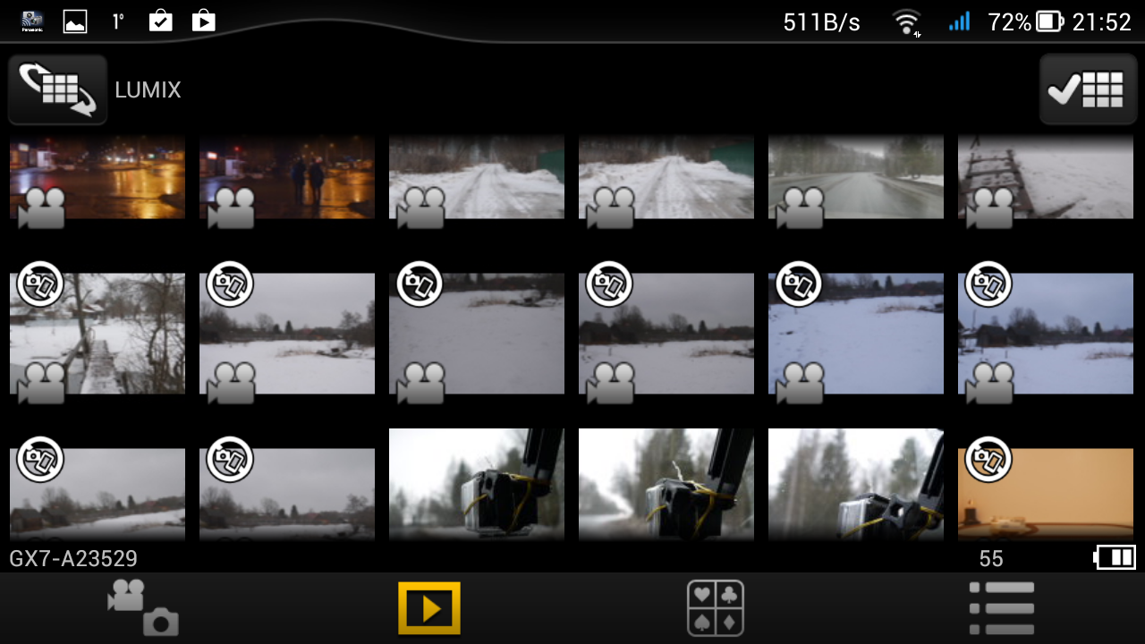 | Режим ожидания с фоновой передачей видеопотока | Менеджер медиафайлов, находящихся на карте памяти |