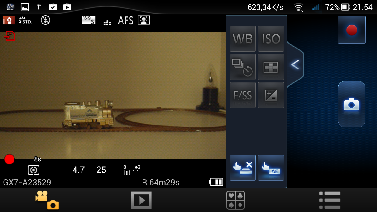Мобильное приложение позволяет управлять большинством важных параметров фотоаппарата, трансляция видеопотока производится с задержкой не более секунды.