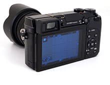 Приятно удивляет наличие наклонного видоискателя, который может принимать вертикальное положение. Разработчик не поскупился на такое усложнение конструкции, что наверняка будет оценено теми, кто умеет снимать, полагаясь на информацию, поступающую от одного глаза.