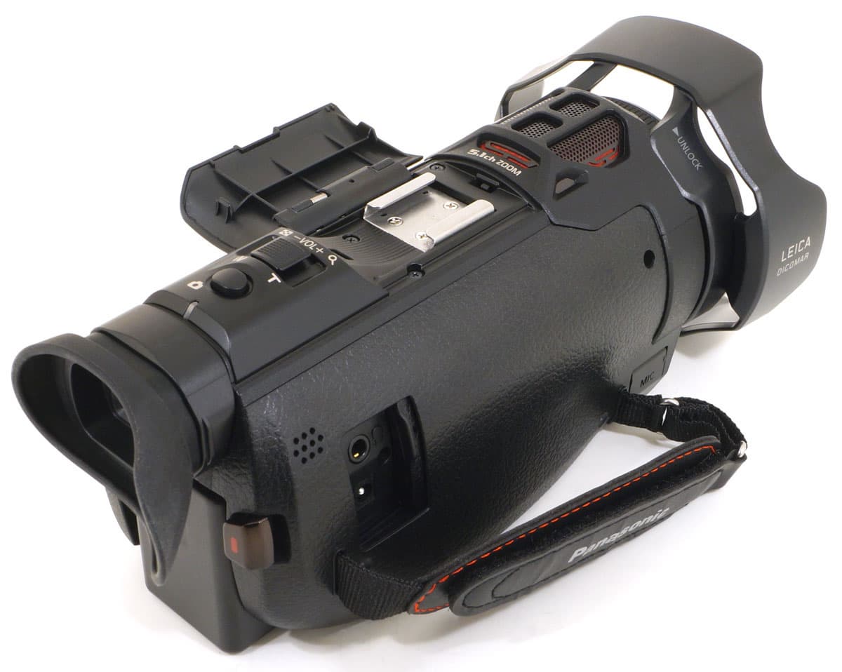 Ещё одно отличие от прежних любительских топ-камер Panasonic: теперь для того, чтобы присоединить к аппарату какой-либо аксессуар (микрофон либо накамерный источник света) пользователю не требуется дополнительный переходник хитрой формы. Стандартный холодный башмак, требующийся для крепления микрофона или света, прячется в верхней части корпуса, под откидной крышкой. Неясно, что же раньше мешало примонтировать эту площадку, ведь очевидно, что такое стандартное решение обходится значительно дешевле в производстве, чем специальный отсек с отдельным переходником и замковой системой его крепления/отсоединения.