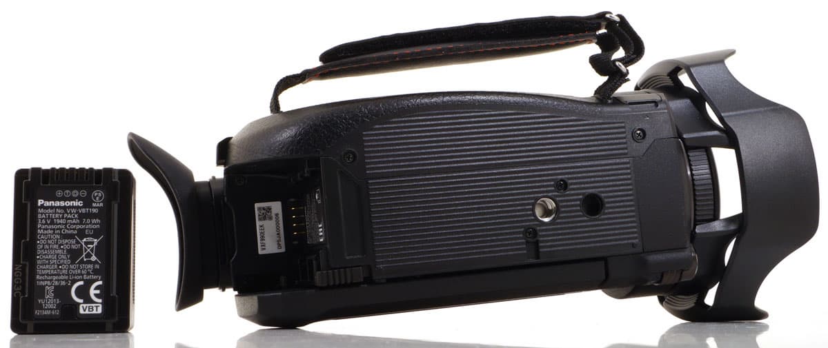 Аппарат снабжается литий-ионным аккумулятором VW-VBT190 емкостью 1940 мА·ч. От полностью заряженной батареи камера может вести беспрерывную видеосъемку в течение 113 минут (комнатная температура, автоматические настройки, режим 2160p/25p 72 Мбит/с). Подчеркнем, что предыдущая версия этой 4K-видеокамеры могла работать в таком режиме лишь 99 минут. Таким образом, в результате оптимизации, проведенной разработчиками, новая модель работает от аккумулятора на 15 минут дольше. Не рекорд, конечно, но если учесть изначально невысокую емкость комплектного аккумулятора... Впрочем, никто не запрещает при длительной съемке использовать сетевой адаптер или вообще пятивольтовый PowerBank, коих нынче в любом магазине огромный выбор.