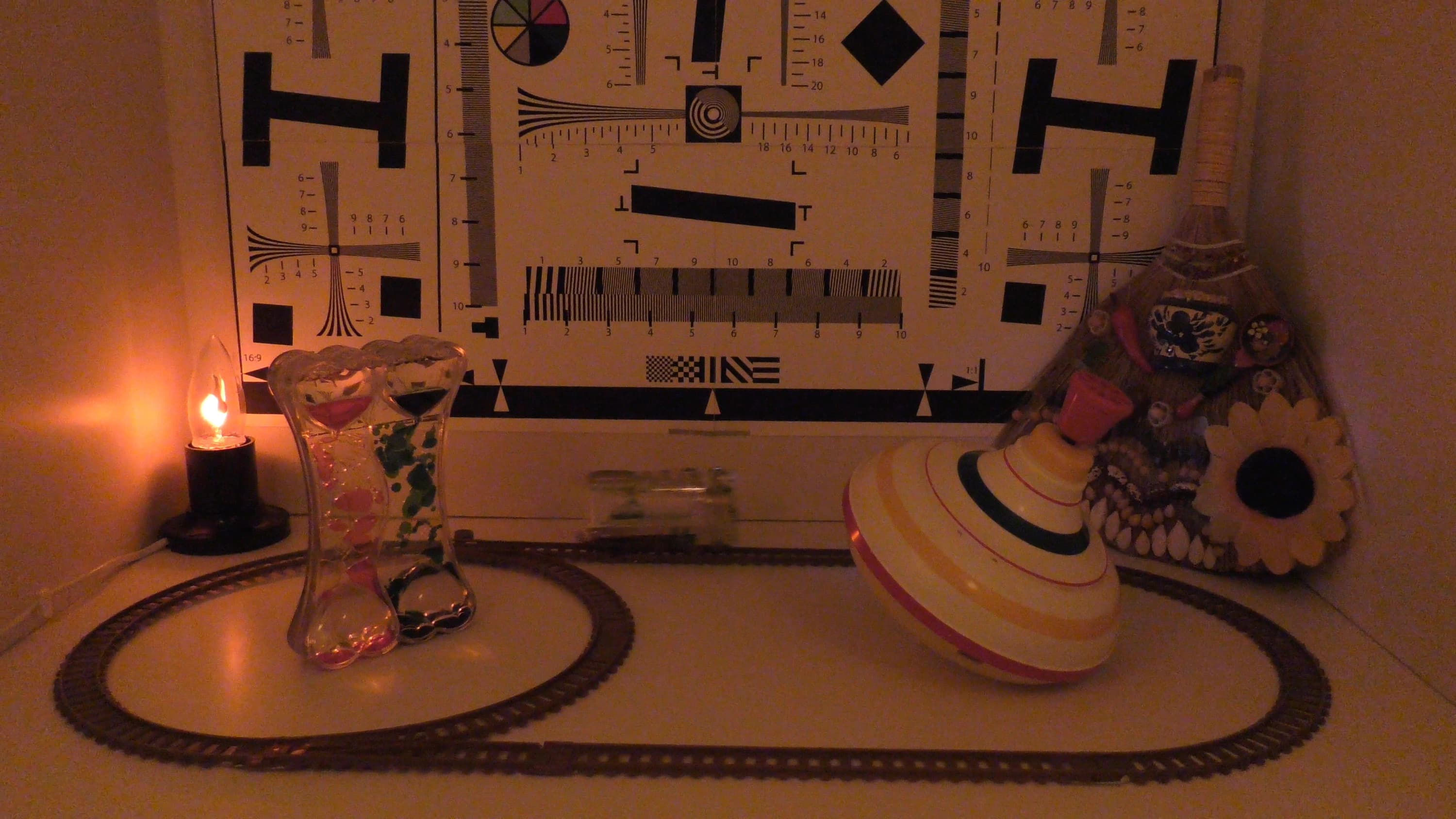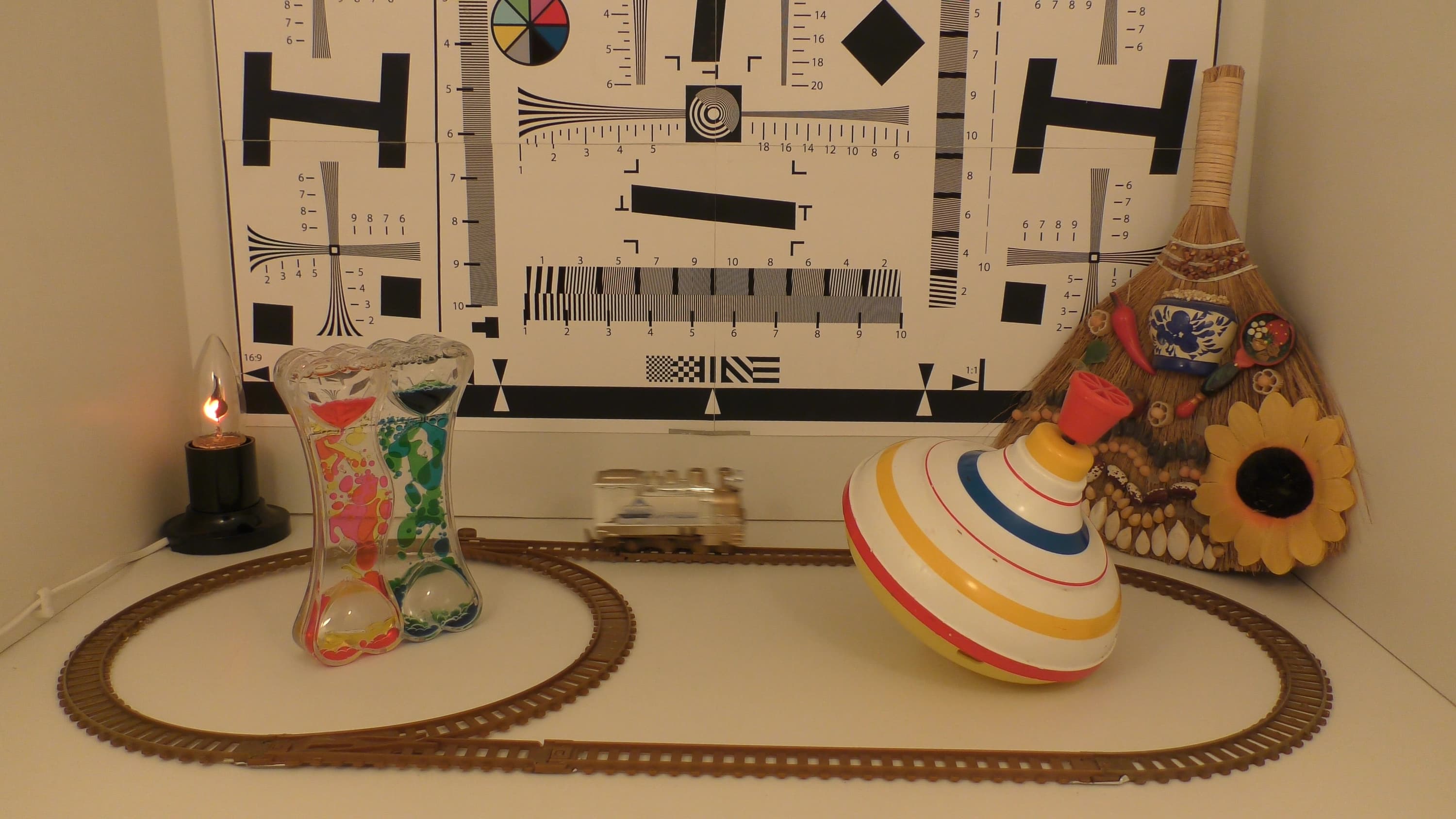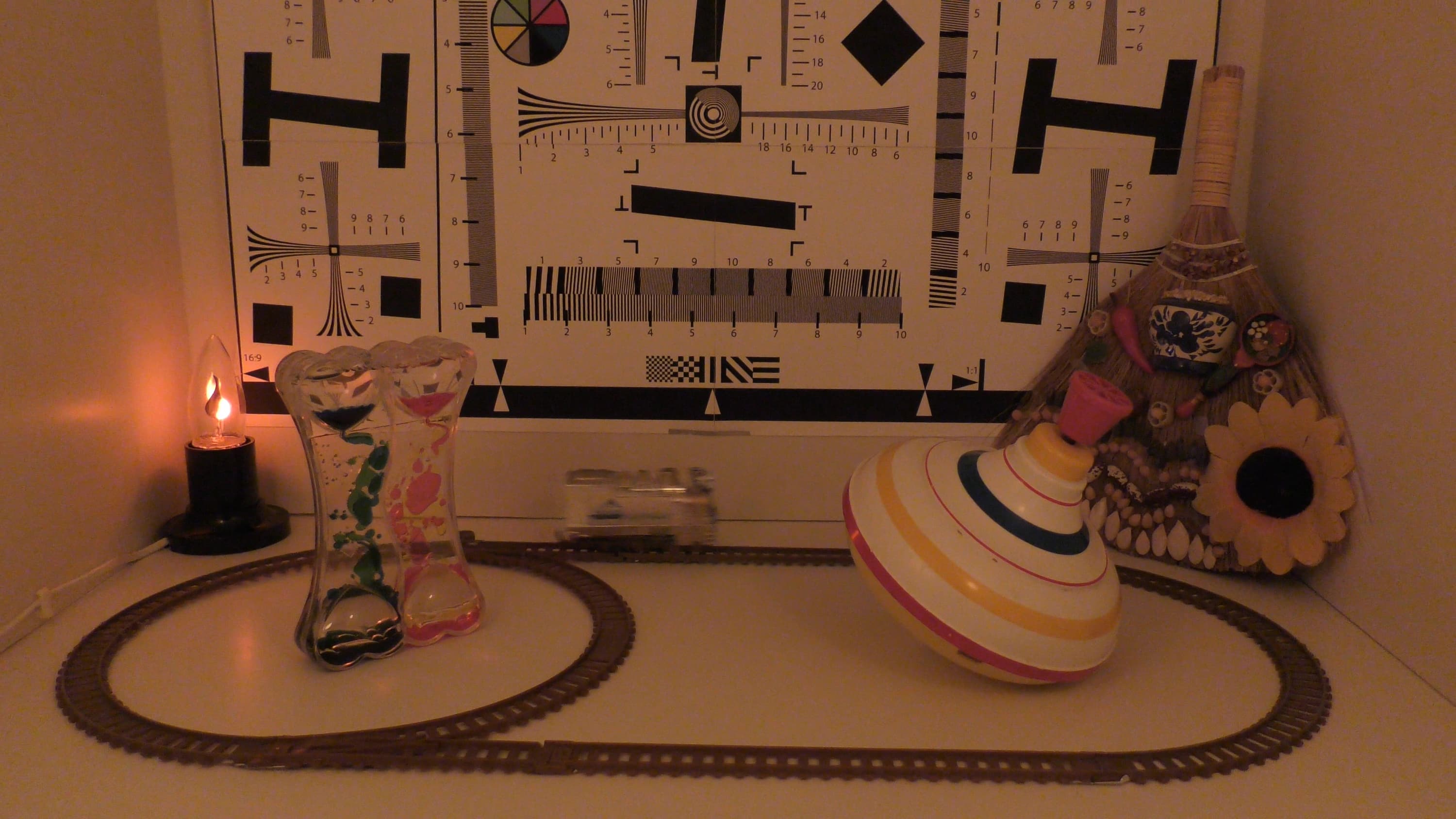 Изучим сначала единственное проявление роллинг-шаттера, которое поддается адекватному измерению — наклон вертикалей. Сделать это можно с помощью несложной установки. Конечно, полученный абсолютный результат не имеет никакого практического значения. Единственная его ценность состоит в том, что эти градусы можно сравнить с результатом измерения роллинг-шаттера других камер, которые нами ранее тестировались аналогичным образом.