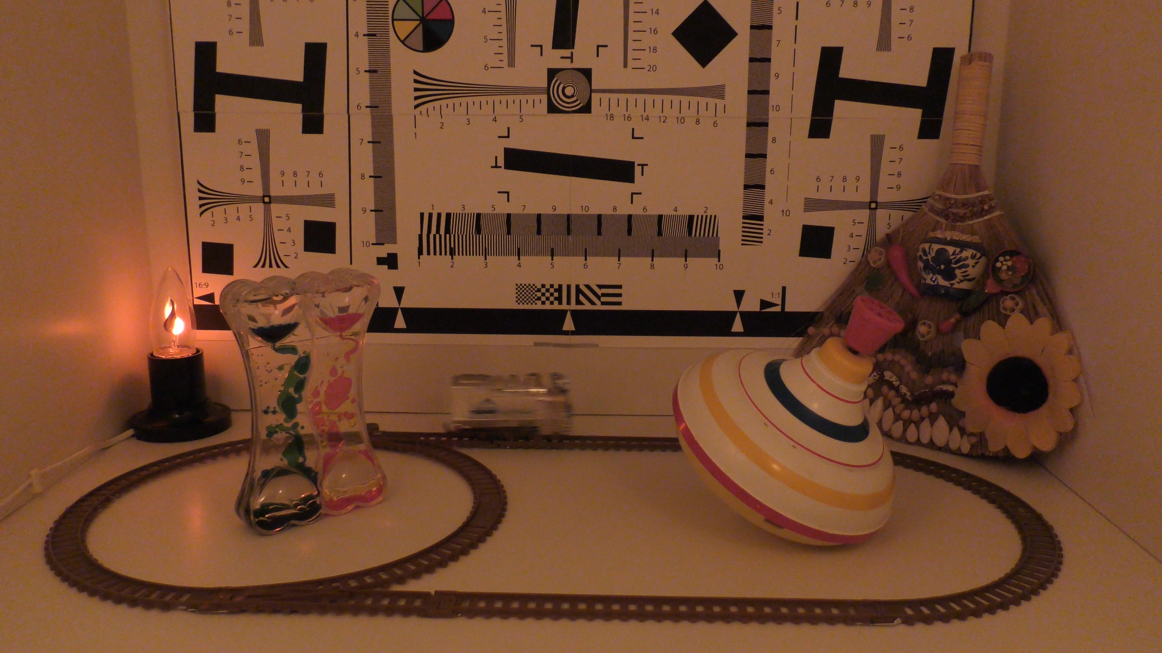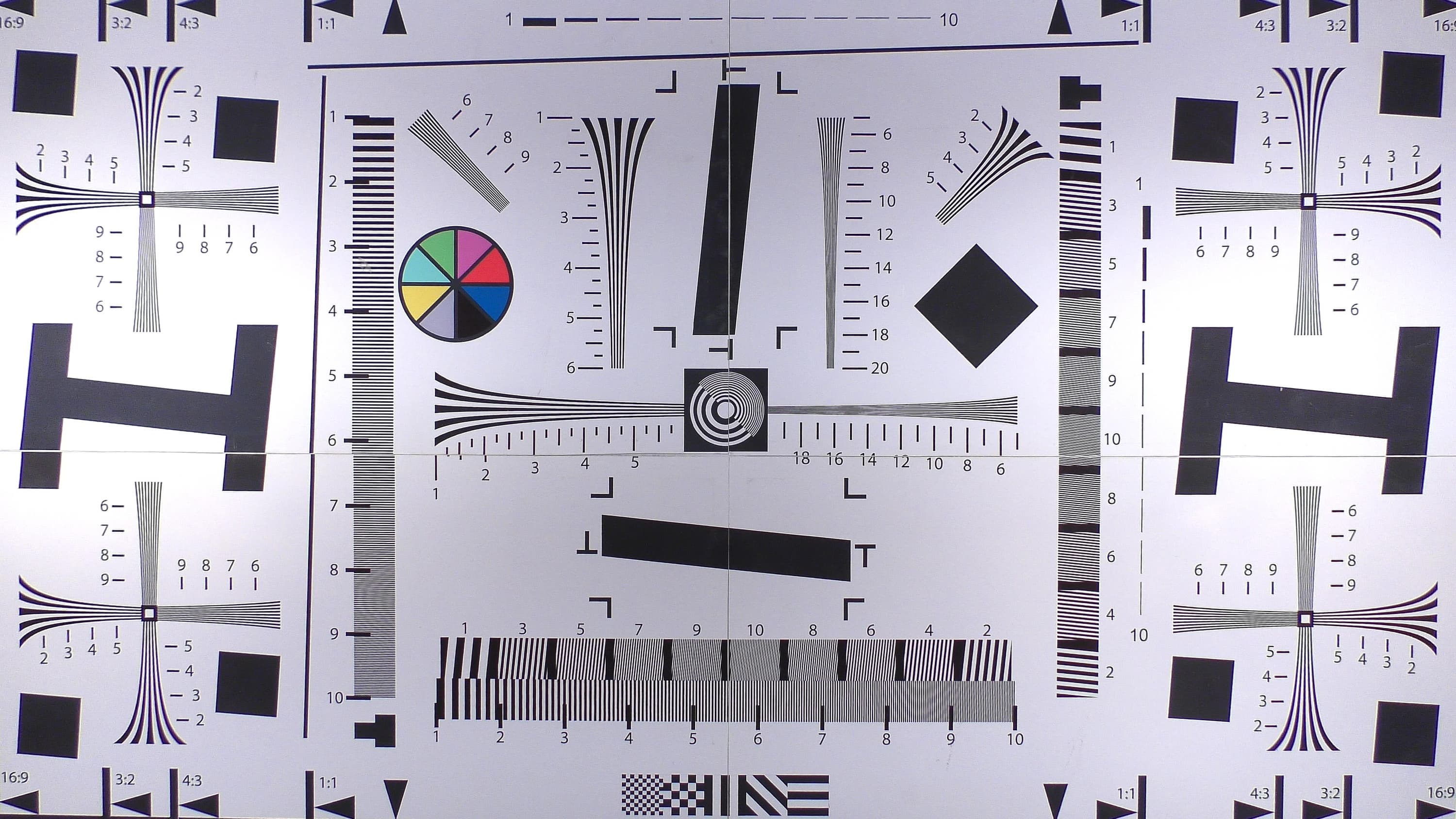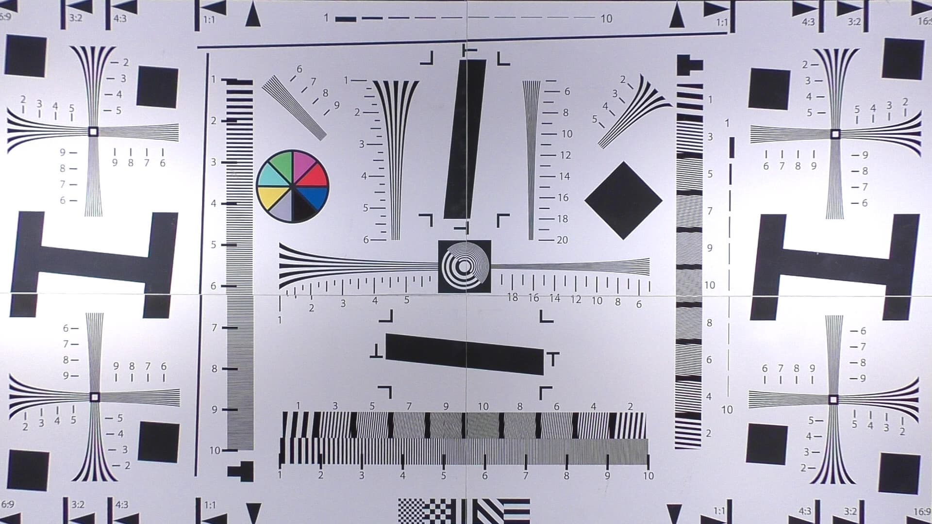 Однако мы по опыту знаем, что практически в любом 4K-аппарате, будь то фото- или видеокамера, разрешающая способность при съемке в Full HD словно бы намеренно занижена. По крайней мере, занижена относительно Full HD-камер аналогичного ценового уровня, с похожей оптикой и даже матрицей. В связи с этим знанием необходимо взглянуть, как обстоит дело с разрешающей способностью в рассматриваемой камере в разных режимах. Узнать это проще и доступнее всего с помощью съемки тестовой таблицы.