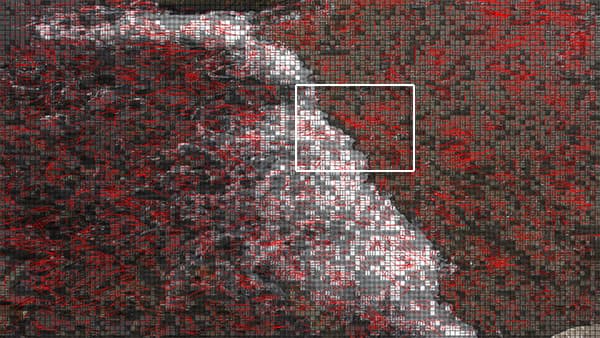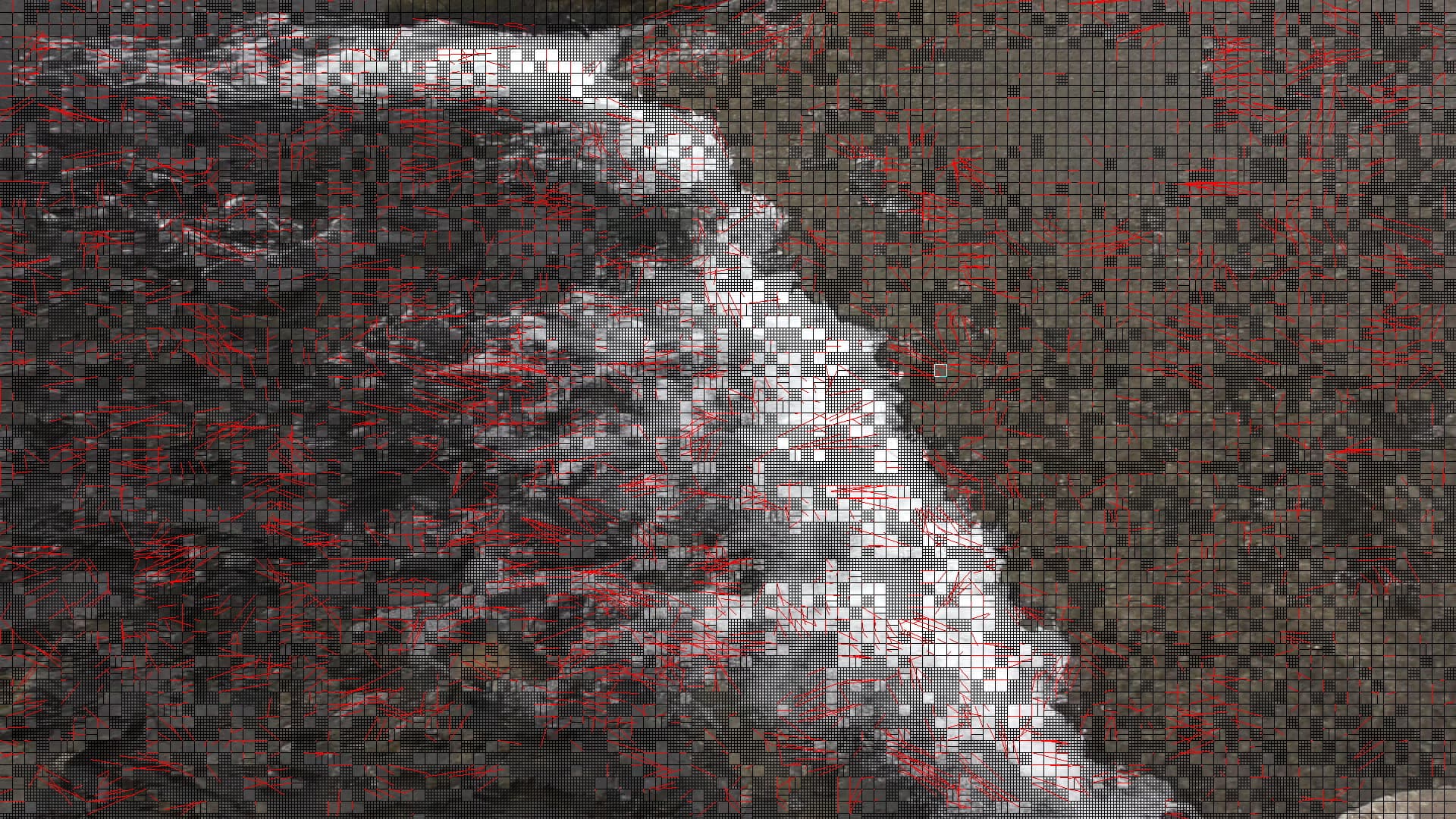 К записи в формате 4K с любой частотой кадров претензий нет (хотя, конечно, более тщательное кодирование деталей не помешало бы). А вот съемку большого количества движения с размером кадра Full HD, очевидно, следует вести только в формате MP4 с битрейтом 50 Мбит/с — с таким битрейтом картинка содержит меньше пиксельных артефактов. Если проанализировать снятые ролики специальным программным инструментом, становится видно, что в 50-мегабитном варианте записи присутствует больше блоков (прямоугольники разных размеров) и гораздо больше векторов их движения (красные линии), чем в 28-мегабитном варианте: