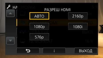 HDMI-выход камеры может транслировать на внешний монитор или устройство захвата видеопоток в трех режимах: чистый сигнал, а также сигнал с простым и детальным информационным наполнением.