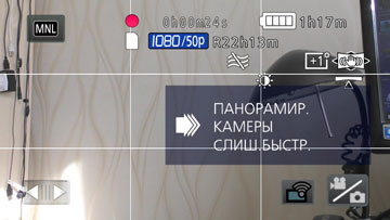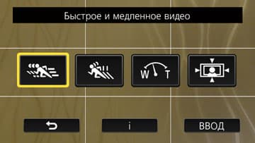 Происходит такая съемка следующим образом: активировав эту установку, оператор нажимает кнопку записи, при этом по умолчанию включается ускоренная съемка, которая в результирующем видео будет выглядеть замедленной вдвое. Выждав момент, когда движение требуется ускорить (то есть, запустить замедленную съемку) оператор нажимает специальную виртуальную кнопку на сенсорном дисплее и удерживает ее необходимое время, при этом результирующее видео окажется ускоренным также вдвое. К сожалению, и этот эффект доступен только при записи в Full HD.