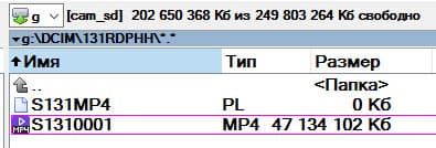 Камера записывает видео в формате MP4, помещая его в разные папки с произвольными названиями. Наверное, эти названия как-то зависят от формата и/или времени съемки. Так, например, выглядит структура папки DCIM после съемки в разное время и в разных режимах: