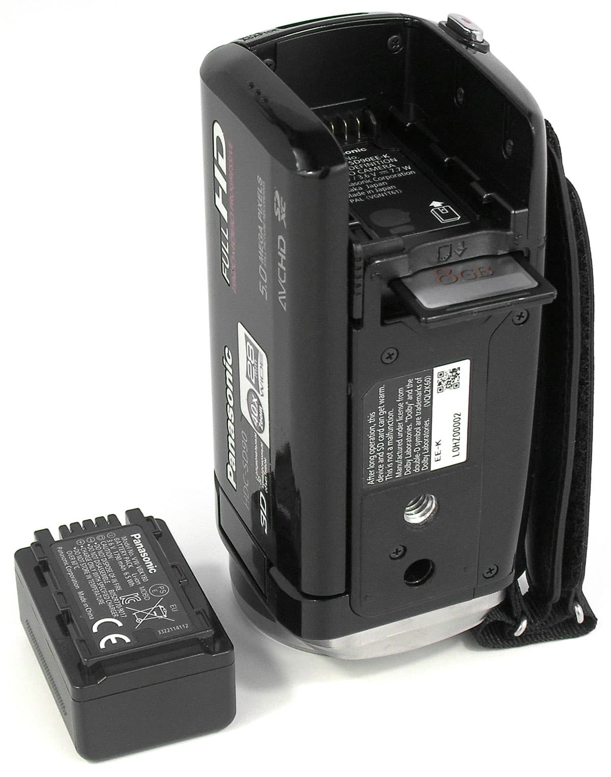 Слот для карты памяти расположен в днище камеры, он прикрыт дверцей, откидывающейся внутрь корпуса. Прилагаемый к видеокамере аккумулятор VW-VBK180 ёмкостью 1790 мА·ч позволяет вести непрерывную видеозапись до 100 минут с открытым ЖК-экраном и до 105 минут — с закрытым.