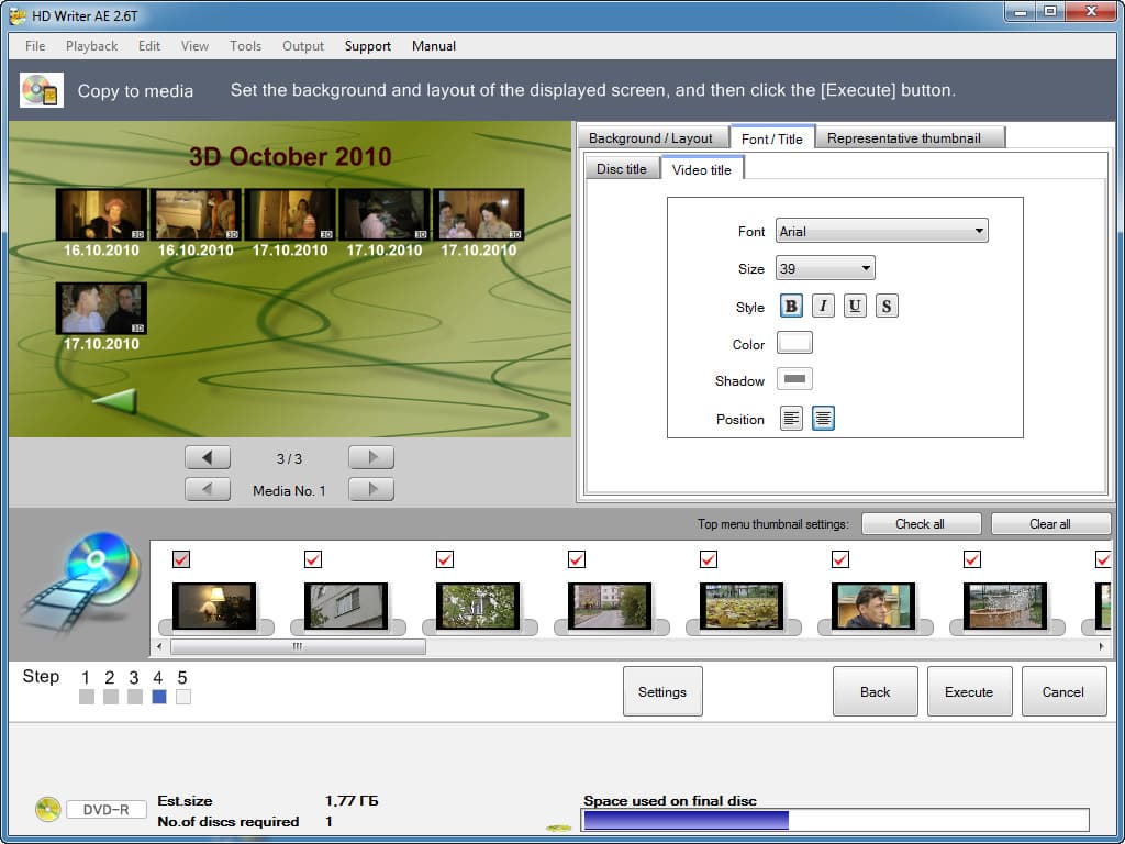Помимо сохранения смонтированного фильма в виде отдельного файла, программа умеет создавать AVCHD-диски с меню.