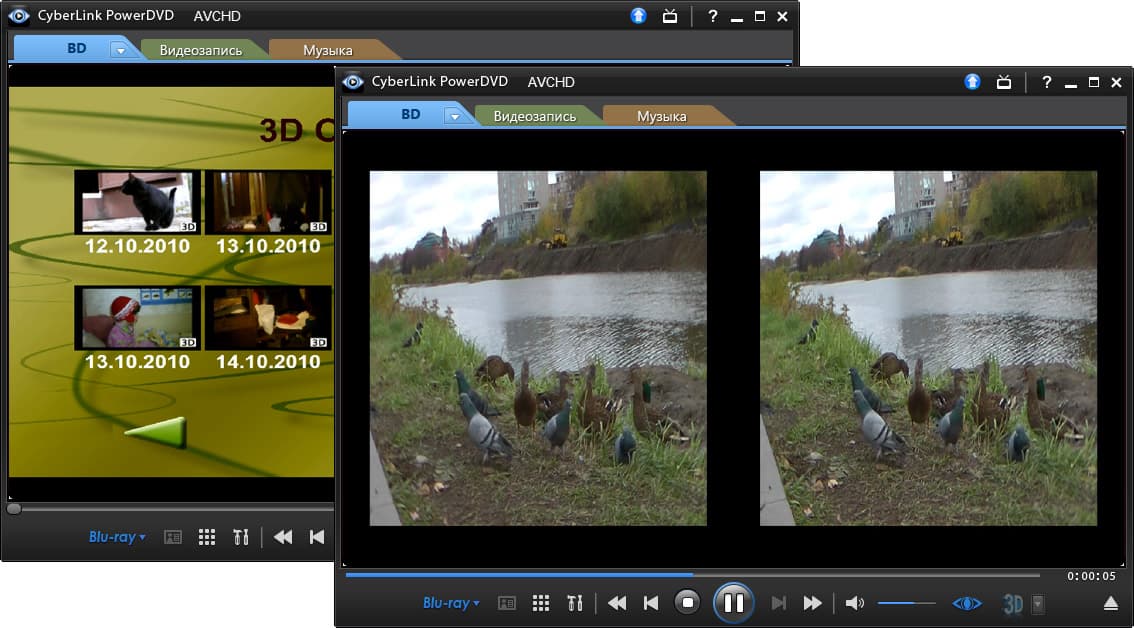 Дело наверняка в другом. А именно — в самом формате AVCHD диска, который не соответствует стандарту 3D Blu-ray. С DVD-болванки, на которую записывается AVCHD-диск, нельзя считать данные с нужной скоростью. Ведь стандарт 3D Blu-ray, похоже, подразумевает одновременное считывание с диска двух видеопотоков, для левого и правого глаза (в папке BDMVSTREAMSSIF на 3D Blu-ray дисках расположен тот самый дополнительный контент, отвечающий за 3D-шность). С диском DVD такой фокус не пройдёт. Более того, сам принцип записи видео в стереопару, по всей видимости, не соответствует этому же стандарту 3D Blu-ray.