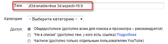 В заключение главы о монтаже видео, полученного рассматриваемой видеокамерой, стоит сказать о появившейся возможности публиковать стереовидео на YouTube. Данный сервис пока ещё тестируется, и в официальных источниках о нём обычно не упоминается. Но, в общем-то, секретов тут никаких и нет. Для того, чтобы включить возможность показа вашего ролика в 3D, достаточно при его загрузке напечатать в поле Теги следующие команды: