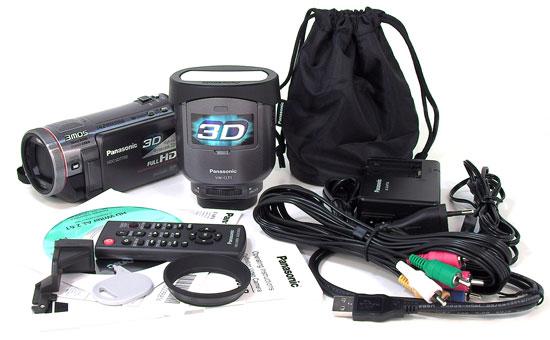 В комплект видеокамеры входят 3D-насадка с чехлом-сумкой для хранения, блок питания, пульт дистанционного управления, USB-кабель, комбинированный аудио/видео композитный и компонентный кабель, адаптер колодки для крепления аксессуаров, бленда-кольцо, навинчивающаяся на объектив, пластмассовый стилус для работы с сенсорным экраном, бумажная документация и компакт-диск с программным обеспечением.