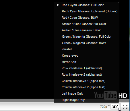 К сожалению, смотреть такое видео можно пока лишь с помощью анаглифического метода. Но мы надеемся, что разработчики всё же рано или поздно прикрутят к сайту какой-нибудь движок, умеющий работать с распространёнными средствами отображения 3D-контента (как, к примеру, недавно сделала компания NVIDIA, запустив онлайн-канал потокового вещания в 3D).