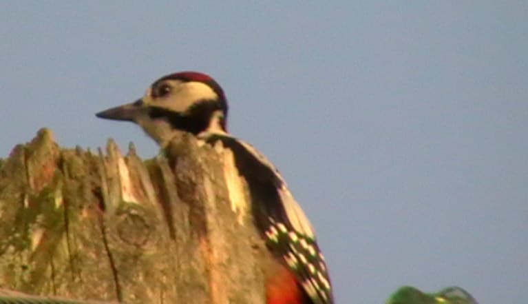 Где-где, но в нашей центральной полосе пуганые лесные птички близко к себе не подпускают. А тут – вот, он, настоящий дятел! Жаль, не оказалось штатива под рукой - при таком увеличении видеокамеру к фоторужью приделывать впору...