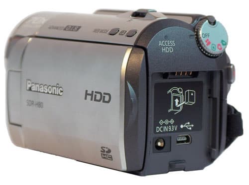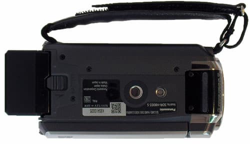 Селектор режимов работы представляет собой колёсико, расположенное под указательным пальцем. Чуть ниже находится кнопка старта записи. Вход для питания и порт USB расположены под аккумулятором — видеокамеры Panasonic соединяются с ПК только при подключении стационарного источника питания.