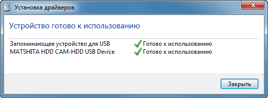 При подключении видеокамеры к ПК по USB необходимые драйверы установятся автоматически, после установки жесткий диск камеры станет виден как ещё один съемный диск.