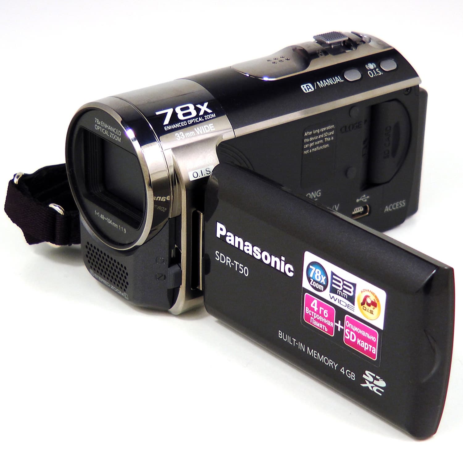 Сильнейший зум, широкоугольный объектив, довольно мощный стабилизатор - вот они, три очка в пользу Panasonic SDR-T50. Ну а тот факт, что видеокамера снимает в стандартном разрешении, никак нельзя записывать в минусы: как раз видеокамеру, снимающую в стандартном разрешении, мы и рассматривали.