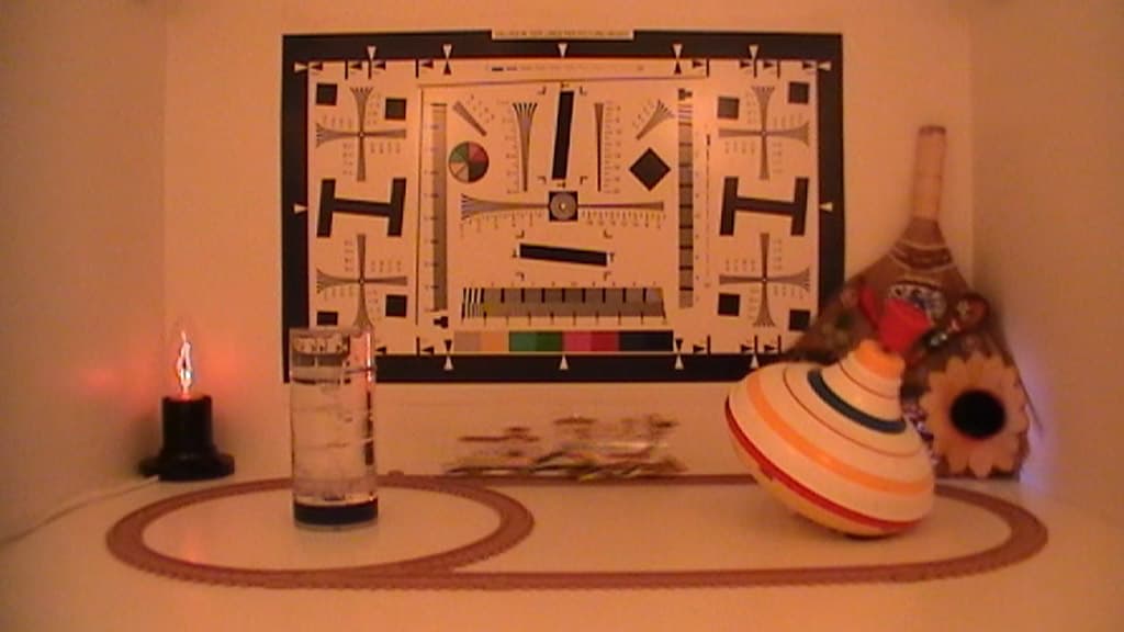 Данное тестирование проводится согласно опубликованной методике в целях установления чувствительности видеокамеры в неизменяемых условиях, а также для определения относительной чёткости выдаваемой картинки; результаты этих тестов аккумулируются на сравнительной странице.