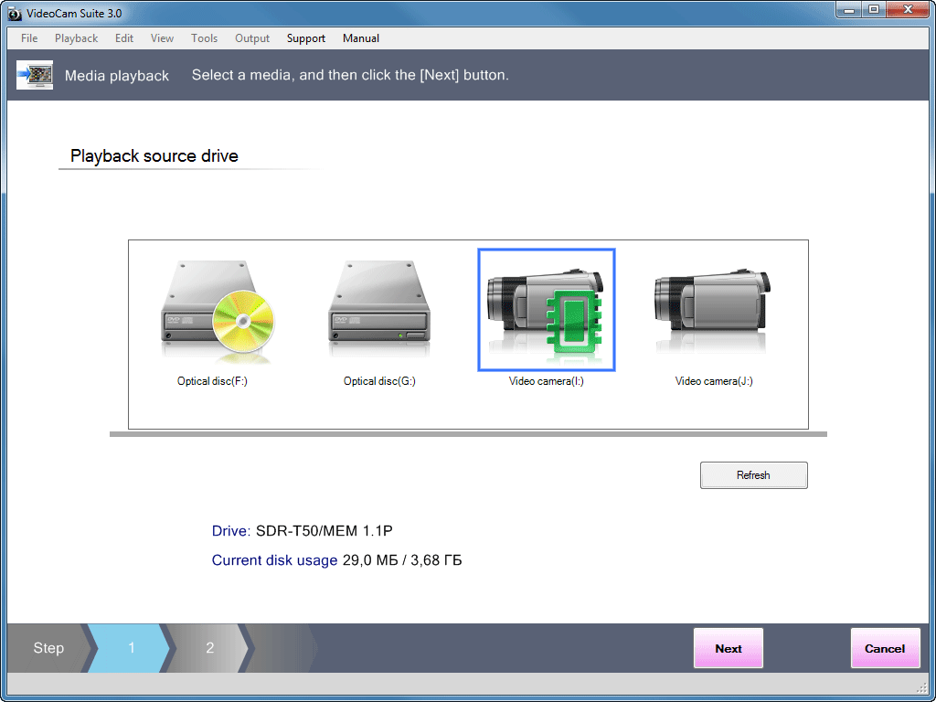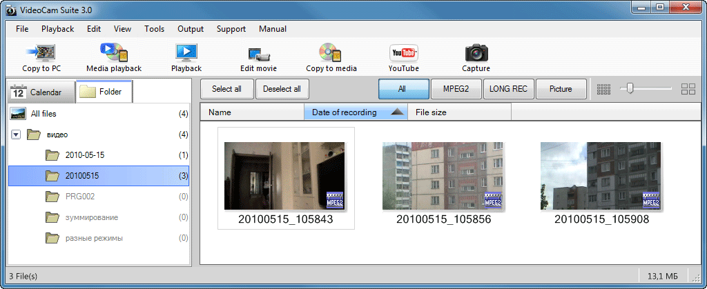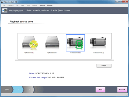 Просмотр отснятого можно произвести непосредственно с подключённой к ПК по USB видеокамеры, а вот редактирование материала возможно только после его импорта на жёсткий диск.