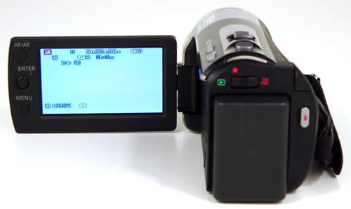 Следящий автофокус, которым оснащена видеокамера — задумка сама по себе хорошая, но вот воспользоваться ею с полной отдачей весьма и весьма затруднительно. Для включения этой опции требуется нажать кнопку AF/AE, расположенную на рамке ЖК-экрана, навести появившийся прицел на требуемый объект, после чего нажать кнопку AF/AE повторно. Предполагается, что после этого нажатия видеокамера запомнит объект, за которым должна следить.
