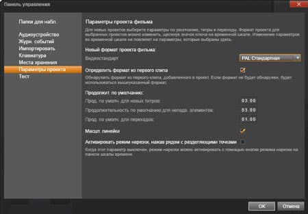 Одно из главных отличий любительской программы видеомонтажа от профессионального видеоредактора кроется в возможности или невозможности установки пользовательских параметров проекта. Любительская программа, как правило, позволяет лишь выбрать один из шаблонов, созданных разработчиком пакета. Никаких собственных настроек, только шаблон! Это ограничение частично обходится путем изменения настроек представления материала на самой таймлинии, но увы, и здесь нет способа ввести пользовательские, нешаблонные, значения: