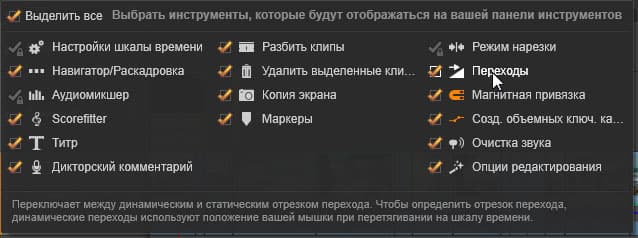 Одно из любопытных новшеств, которые наверняка понравятся домашнему пользователю — наглядная и анимированная работа инструментов. Например, банальная вставка перехода между клипами уже не выглядит скучно. При наведении курсора мышки к краю клипа этот край услужливо отгибается, теперь достаточно лишь зацепить сгиб мышкой и протащить создаваемый переход на любое подходящее расстояние. Небыстро, зато наглядно и доступно пониманию любого, даже самого неподготовленного пользователя.