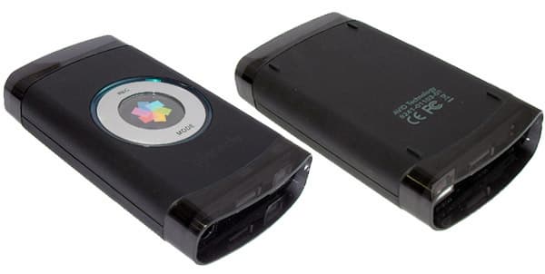Устройство представляет собой небольших размеров корпус, выполненный из рифленого серо-черного пластика (будь он посветлее — сошел бы за iPod-овский алюминий). Полупрозрачные накладки на торцах устройства прикрывают входы и выходы, а заодно надежно защищают внутренности аппарата от любопытных взглядов: без порчи товарного вида вскрыть корпус практически невозможно.