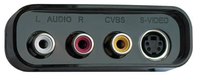 В верхней части устройства расположены следующие разъемы: два входа аудио ("тюльпаны", левый и правый каналы), вход Composit Video (RCA — "тюльпан", PAL-SECAM-NTSC), и вход S-Video (PAL-SECAM-NTSC).