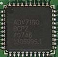 Попробуем разобраться, как работает устройство. Оцифровка аналогового сигнала здесь возложена на микроскопический ADV7180 производства Analog Devices (заранее приносим извинения за неразборчивые фотоснимки — такова нынешняя маркировка чипов, неглубокая и малоконтрастная).