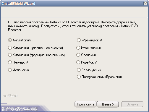 Во время установки выяснилась мелкая неприятность: интерфейс модуля Instant DVD Recorder все еще не переведен на русский язык. Однако можно быть уверенным, что в силу простоты и крайнего минимализма, в духе которого выполнен этот модуль, проблем с работой не возникнет ни у кого.