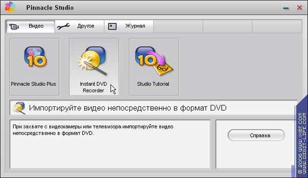 Давайте пойдем самым коротким путем: используем утилиту Instant DVD Recorder, созданную специально для нетерпеливых (работа в самой Pinnacle Studio Plus 10 подробно описана в недавнем обзоре Павла Ерофеева).