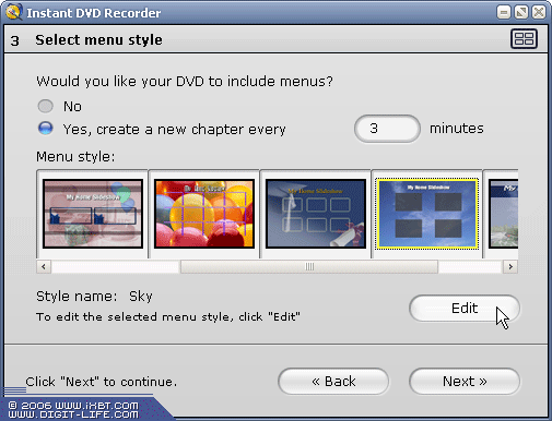 Далее нужно будет определиться — хотите ли вы использовать меню в будущем DVD или стоит отказаться от этого. Дело в том, что расстановка глав здесь может быть произведена только автоматически и только через определенное время в минутах (количество минут можно выставить вручную).