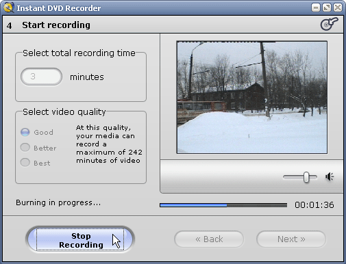 Следующий шаг приводит к захвату видео. Здесь можно выставить продолжительность захвата в минутах и качество видео (из трех вариантов).
